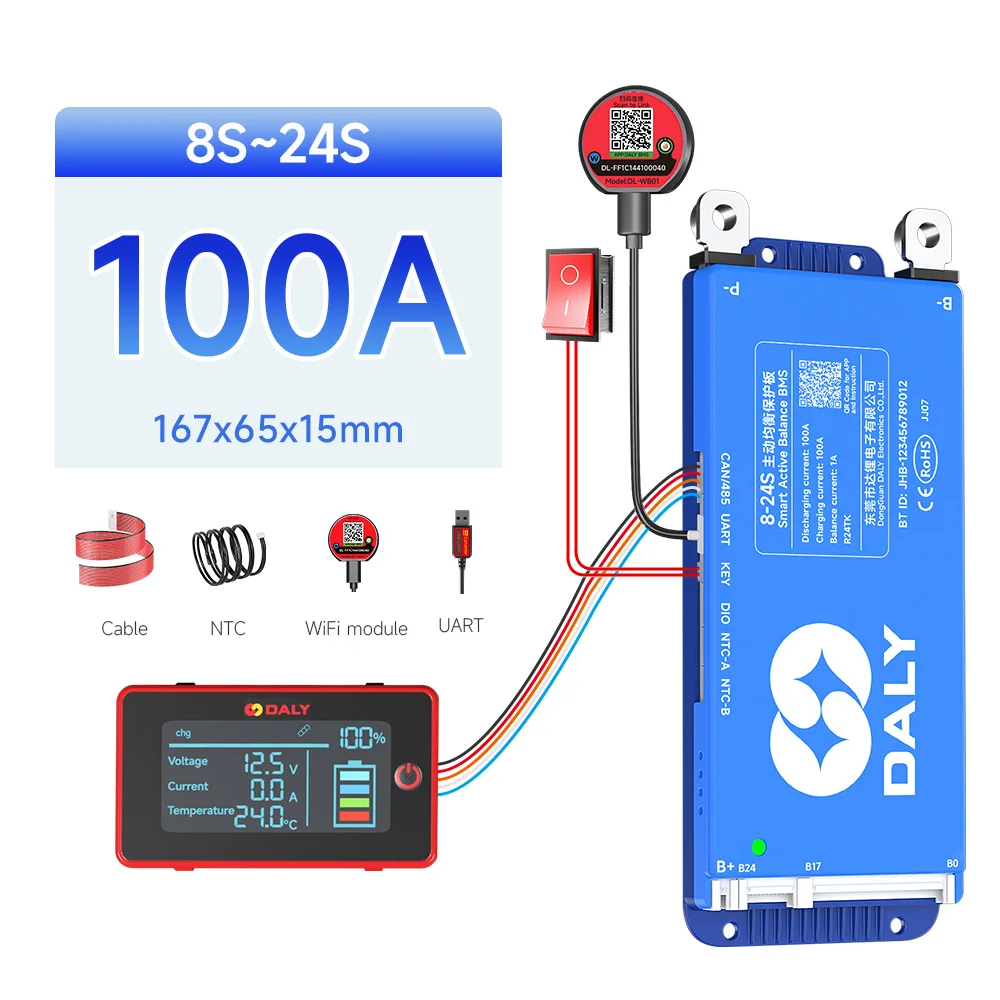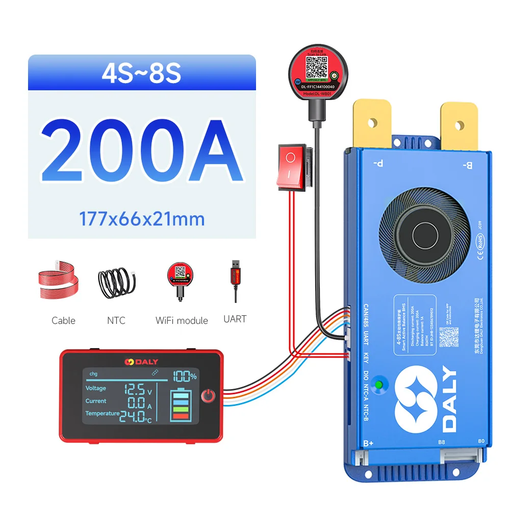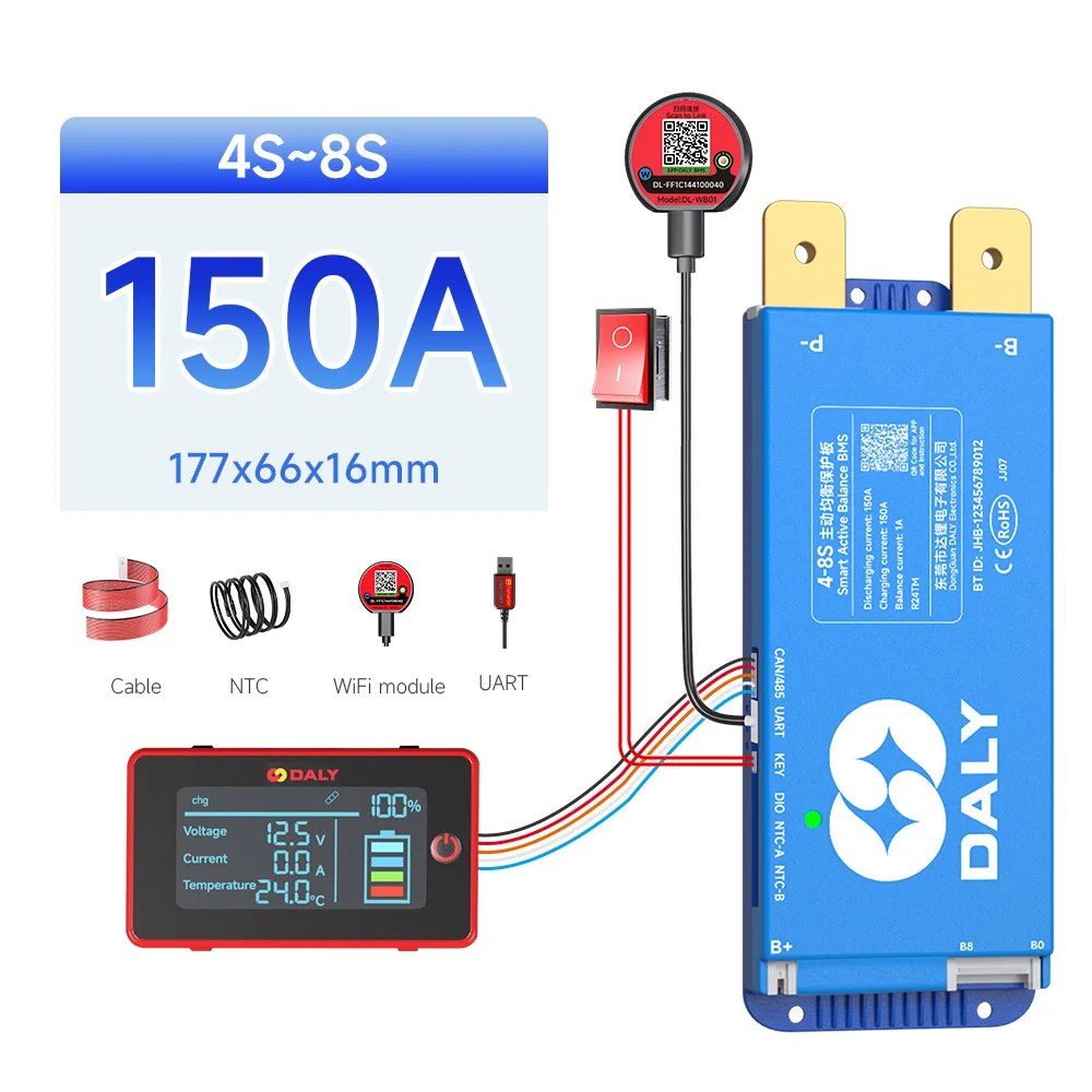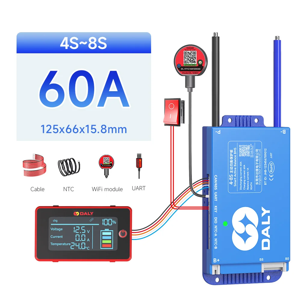 DALY BMS Active Balance 1A 100A 150A 40A 60A 12V 24V 48V 200A pour 4S 8S 16S LiFePo4 BMS avec écran LCD 3.0 pouces RS485 UART WIFI KEY