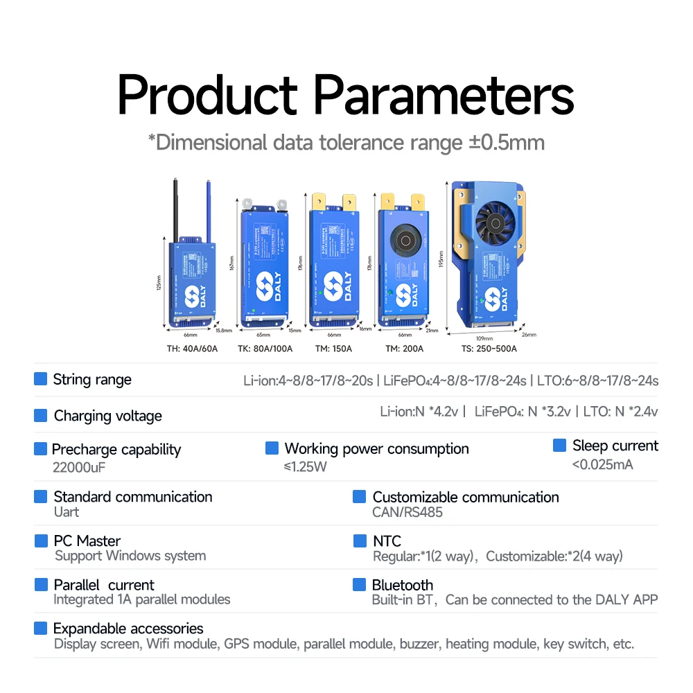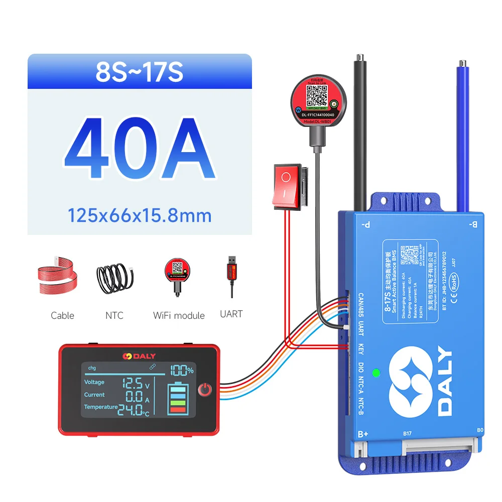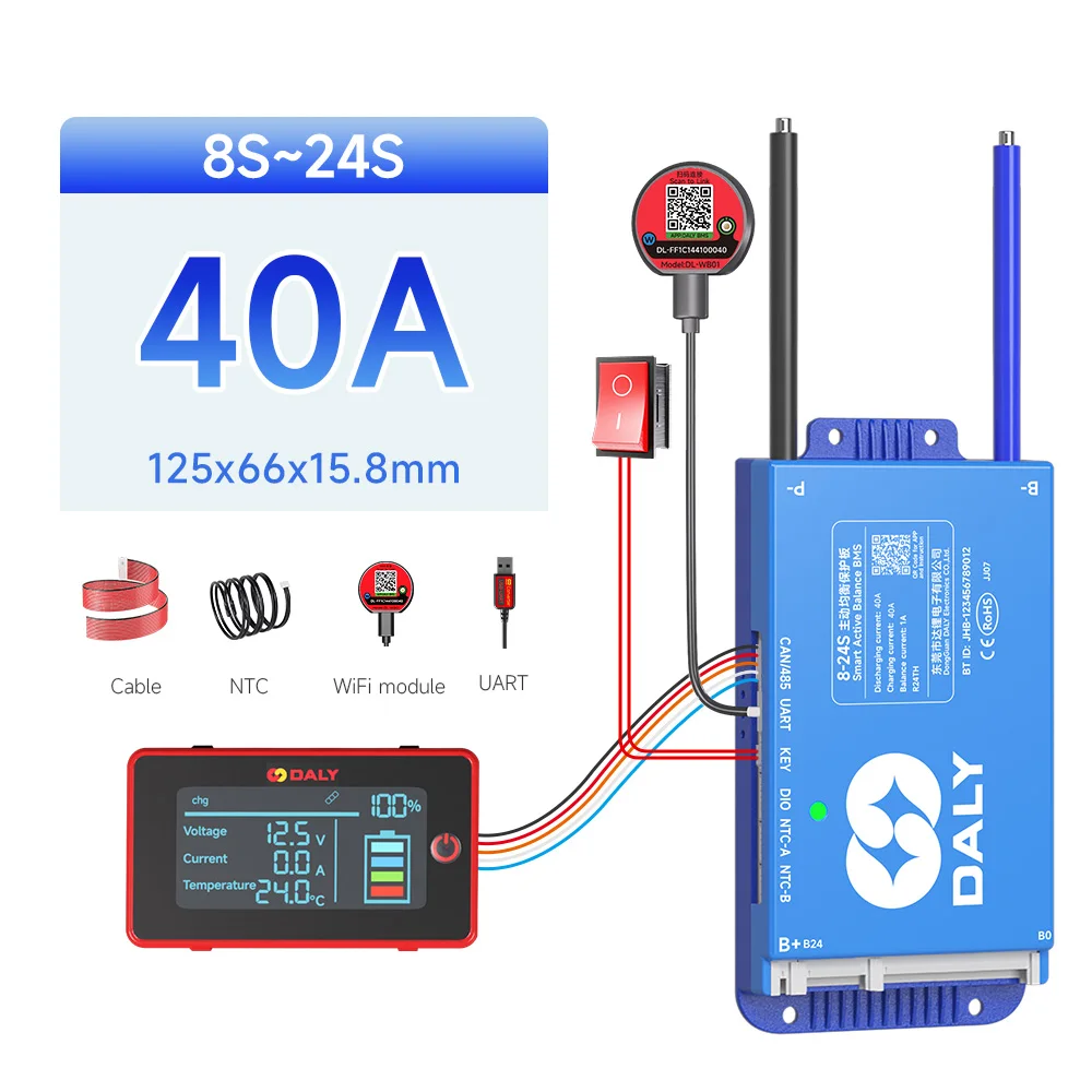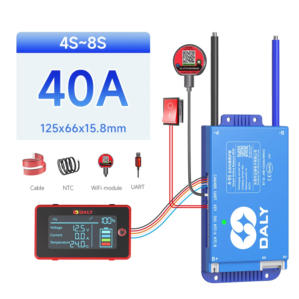 DALY BMS Active Balance 1A 100A 150A 40A 60A 12V 24V 48V 200A pour 4S 8S 16S LiFePo4 BMS avec écran LCD 3.0 pouces RS485 UART WIFI KEY