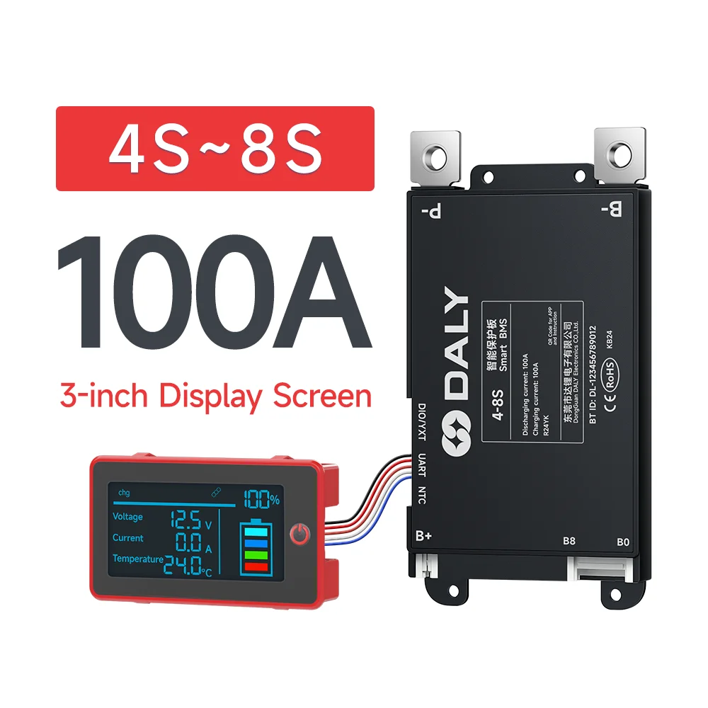 Daly Smart BMS LCD de 3 polegadas UART 4S 7S 8S 13S 14S 16S 17S 20S 24S Bluetooth intégré 100A 120A 150A 200A Lifepo4 Li-Ion L