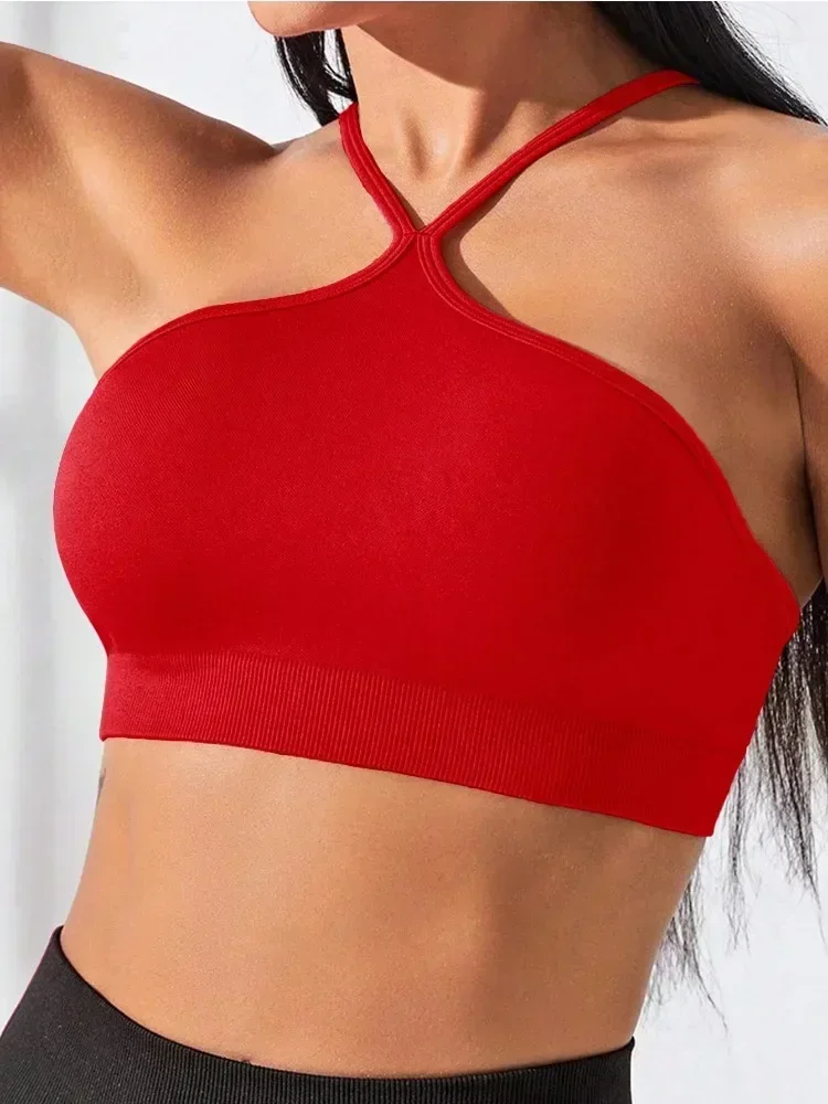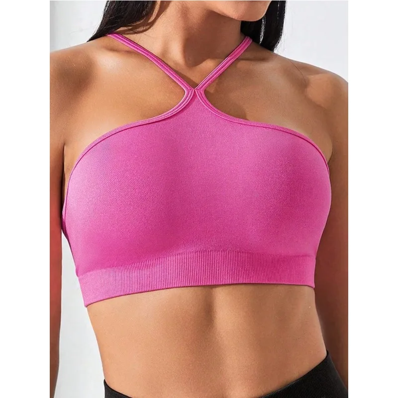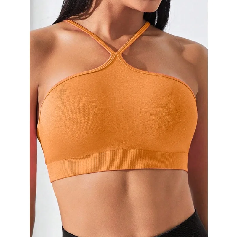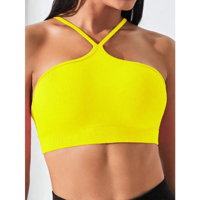 Débardeur de sport croisé pour femmes, coupe cintrée, sans couture, col licou, t-shirt court, hauts d'entraînement