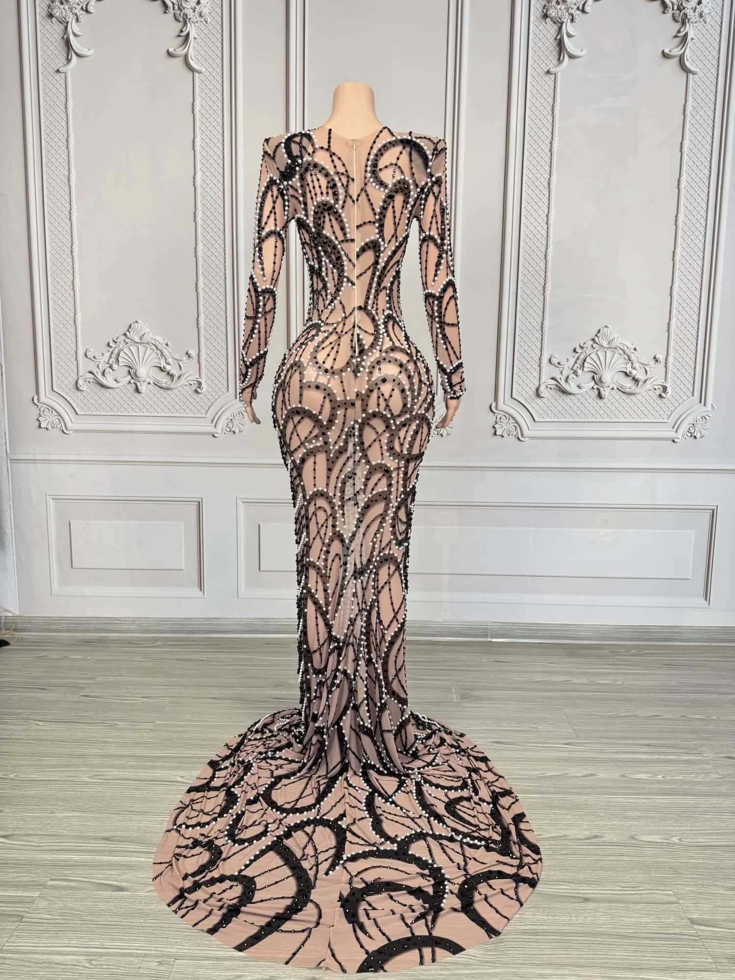 Design Sense – robe de soirée pour femmes, noir et blanc, Double couleur, perles, Sexy, maille, Perspective, célébrité, tapis rouge, yueshi