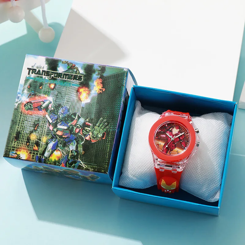 Dessin animé Mickey Flash lumière filles montres avec boîte bracelet en Silicone Spiderman enfants montres enfants étudiant horloge reloj infantil
