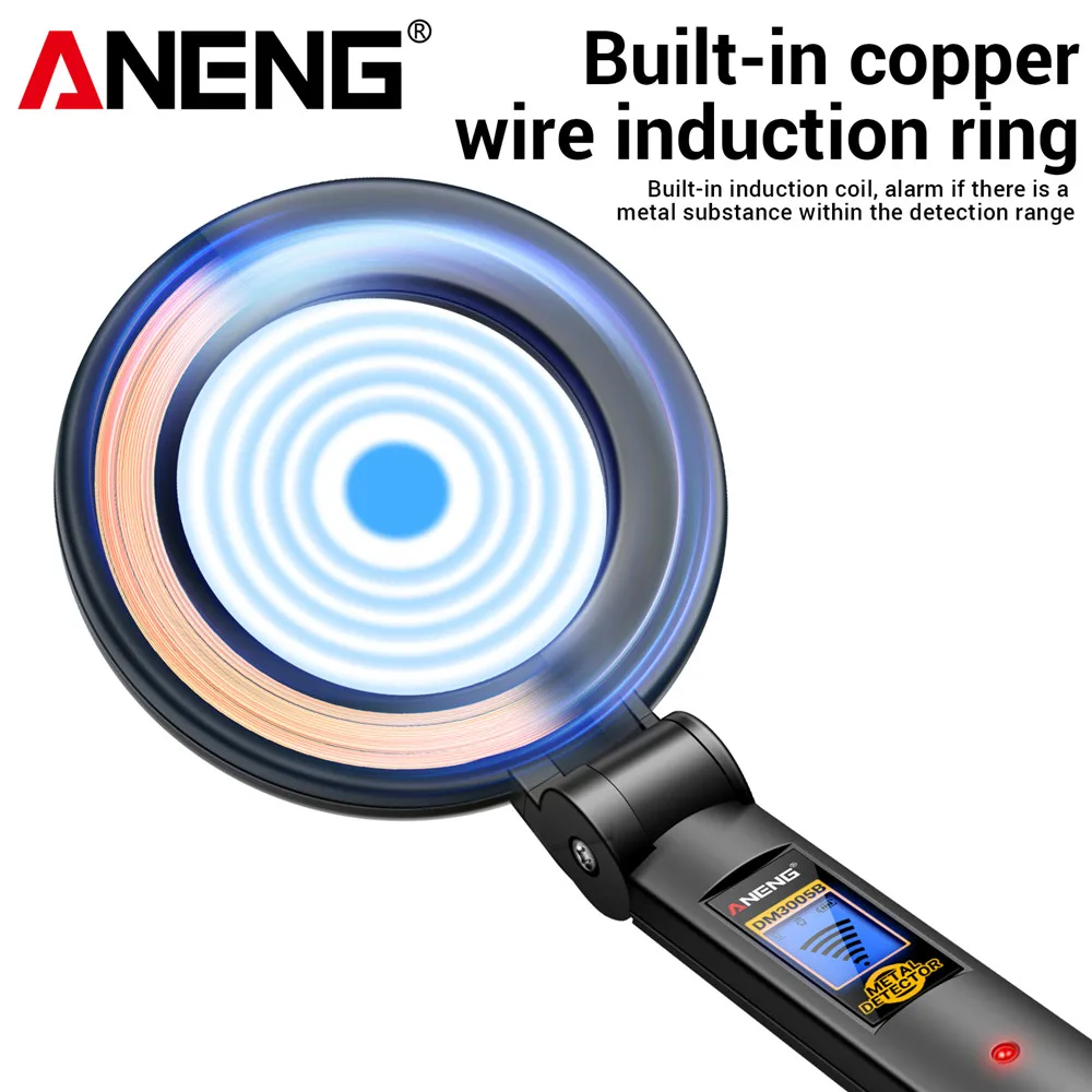 360 outil d'analyse, recherche de profondeur de 120 mm, alarme audio de vibration LED, recherche d'or, chasseur de trésors portable, recherche de clous pour cloisons sèches, localisateur de vis pour bois, détecteur de pièces de monnaie de plage, sonde d'or de rivière, outil de sécurité pour charpentier, recherche de goujons de bricolage, ANENG DM3005B, pointeur d'épingle de prospection, mode de chasse silencieuse, réglage automatique à un bouton, détecteur