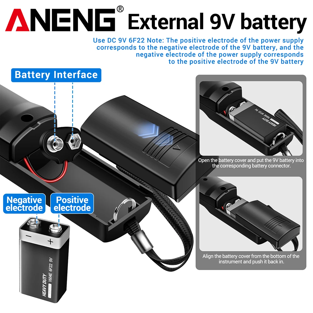 Type de batterie : 1 * batterie DC 9 V 6F22 (non incluse)