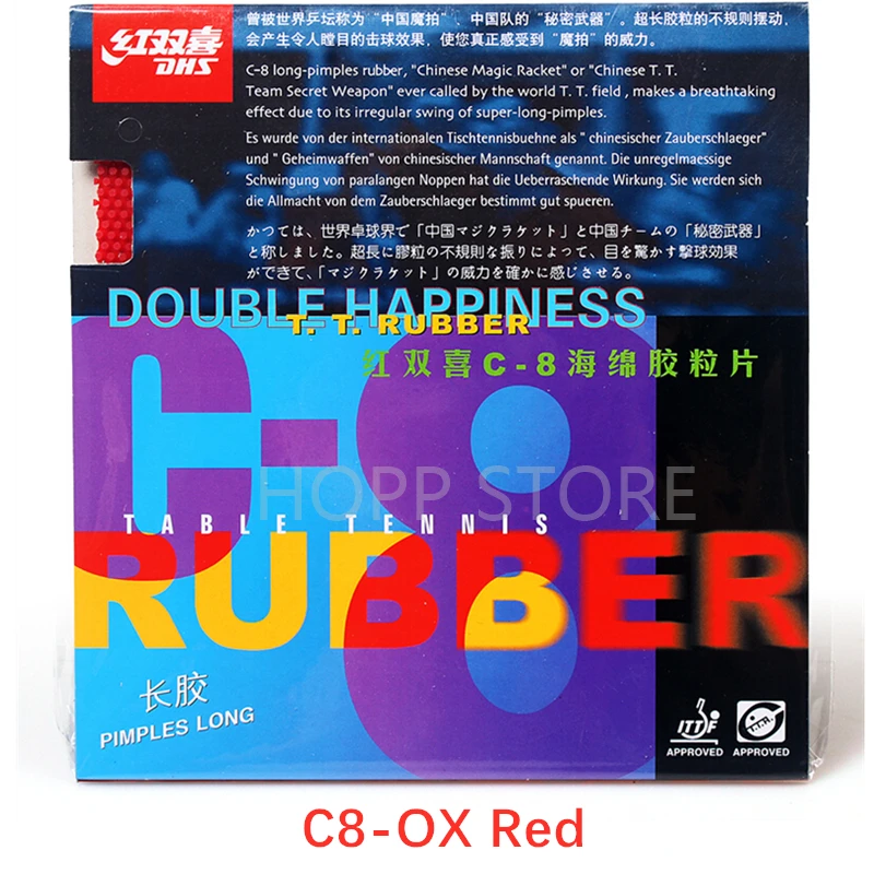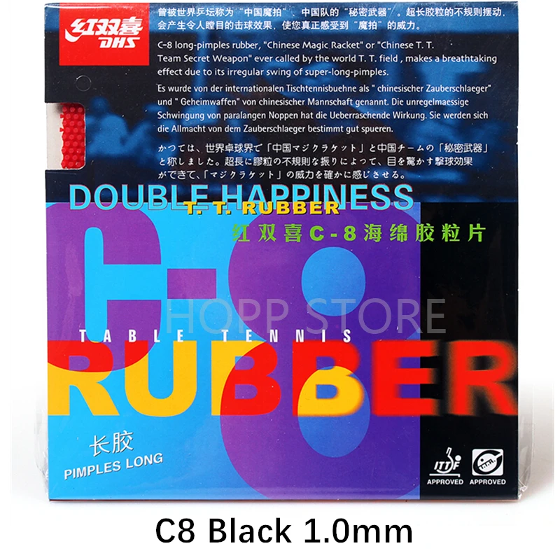 DHS C8 caoutchouc de tennis de table Original Defensive + boucle pips-plateau long OX DHS éponge de ping-pong