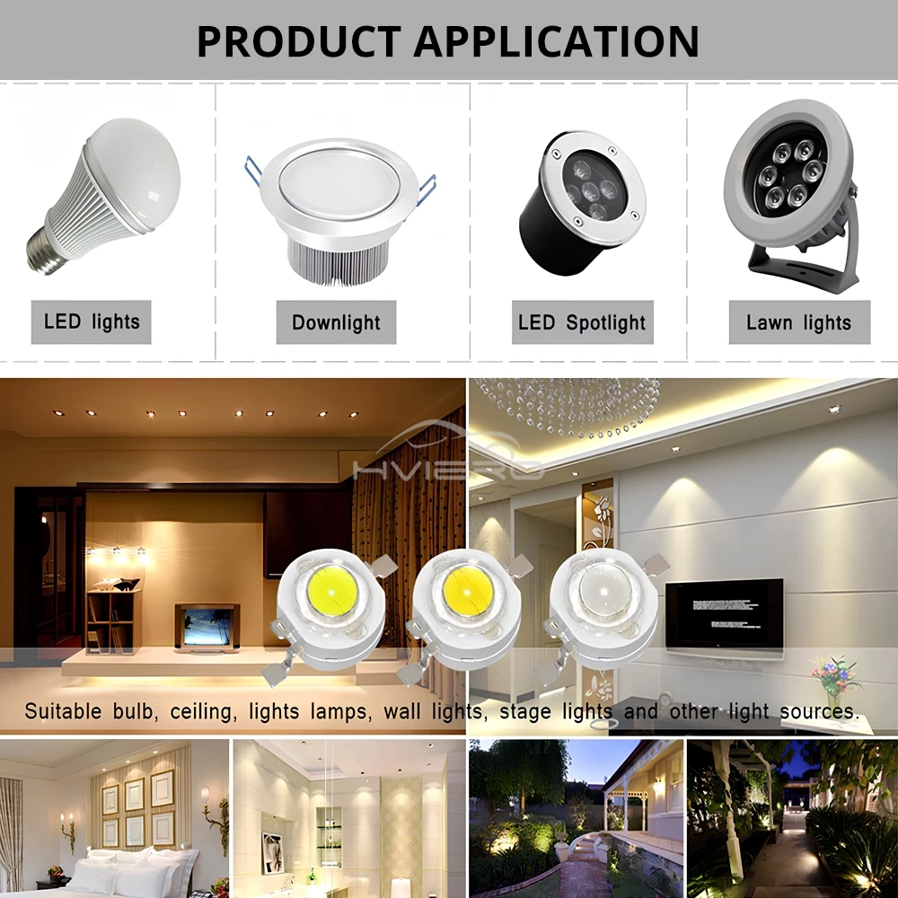Parfait pour l'éclairage de circulation, l'éclairage de paysage, l'éclairage publicitaire, l'éclairage intérieur, l'éclairage spécial. Utilisation polyvalente dans la décoration de la maison, les projets LED COB, les projecteurs LED, les downlight LED, la décoration de lampe LED, l'ampoule LED.