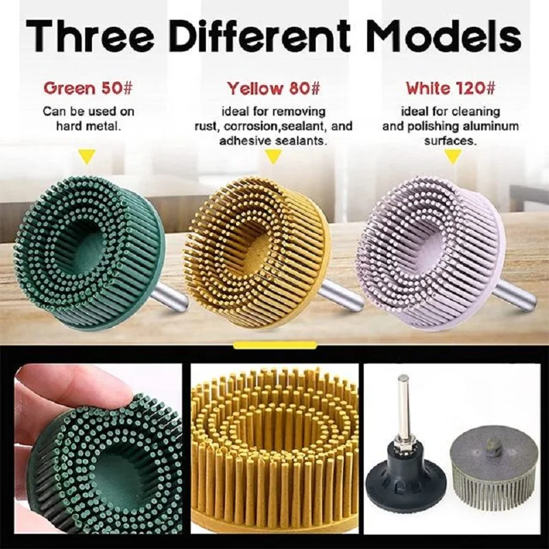Matériau de qualité : le disque à poils épais est fabriqué dans un matériau émeri, avec une bonne élasticité et ténacité, résistant à l'usure et durable ;Les bandes de pinceau remplies d'abrasifs peuvent être appliquées efficacement pour l'ébavurage, le polissage, le mélange, la finition, le nettoyage, la rouille, etc.