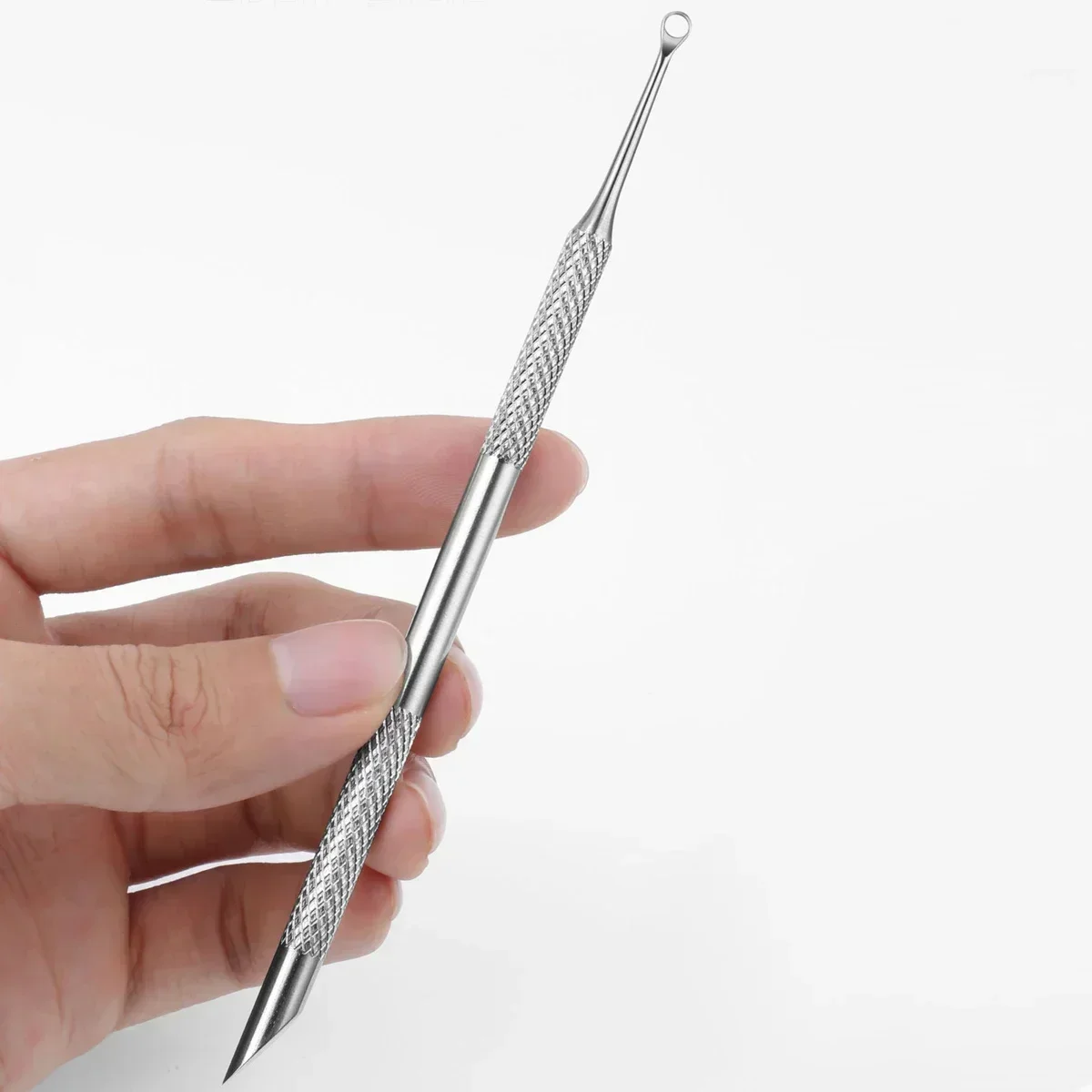 Dissolvant d'acier inoxydable à Double extrémité, bâtons de manucure, outil de meulage des ongles biseautés, lime circulaire à tête biseautée, poussoir à cuticules