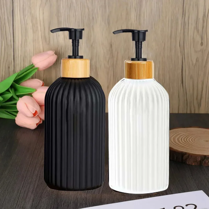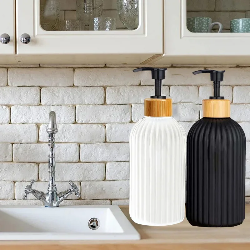 Distributeur de savon en bande avec pompe en bambou rechargeable shampooing revitalisant mains et vaisselle distributeur de savon bouteille pour cuisine salle de bain
