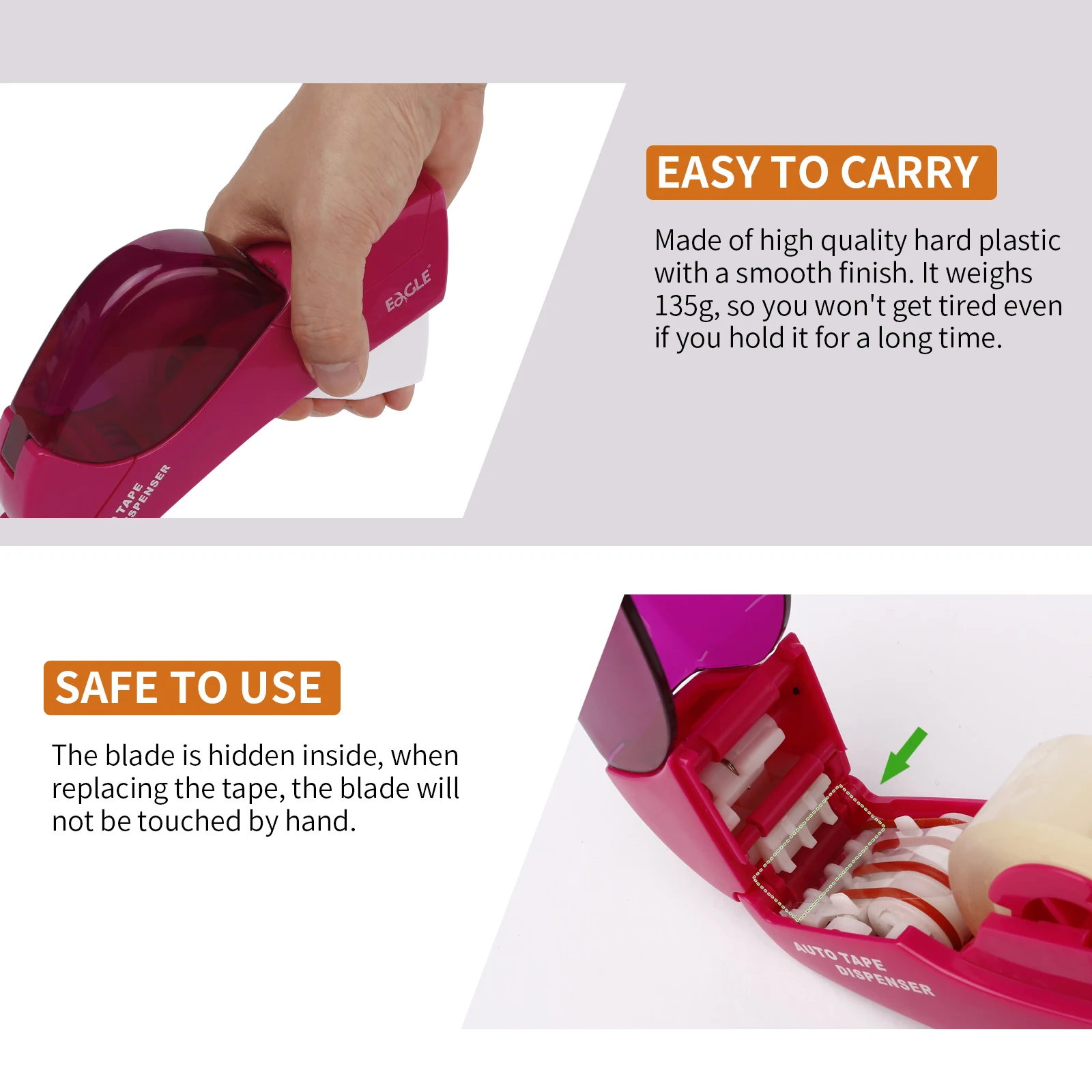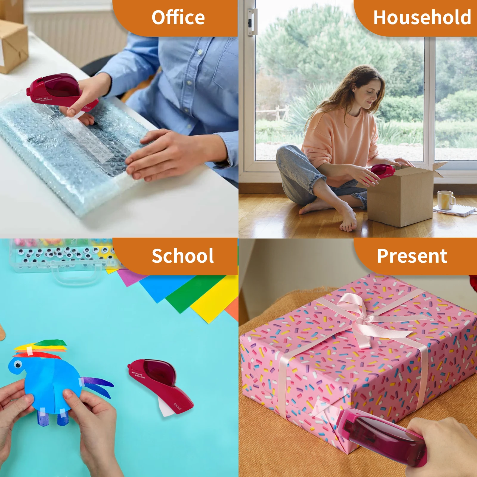 Distributeur automatique de ruban adhésif Eagle, aucune batterie requise, avec 2 rouleaux de ruban adhésif gratuit, adapté au travail manuel, emballage cadeau familial