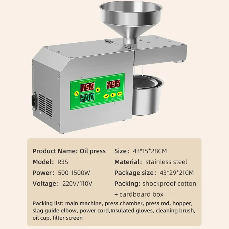 DIVEDEER 800W presse à huile R3S contrôle Intelligent de la température petite presse à huile domestique huile d'arachide/huile de sésame/tournesol R3S