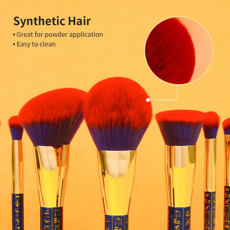 Docolor Egypt Ensemble de 19 pinceaux de maquillage de haute qualité : pinceaux pour fond de teint, poudre libre, estompage, poudre pour le visage et fard à paupières.