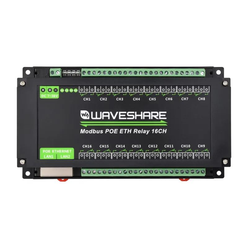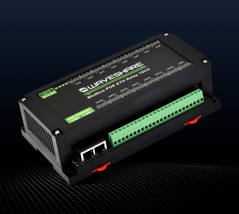 Ce produit est un module relais 16 canaux conçu pour les environnements industriels, doté d'un contrôle à deux interfaces Ethernet.Il adopte les protocoles Modbus RTU/Modbus TCP, prend en charge l'alimentation PoE et est également livré avec un botier de montage sur rail ABS.
