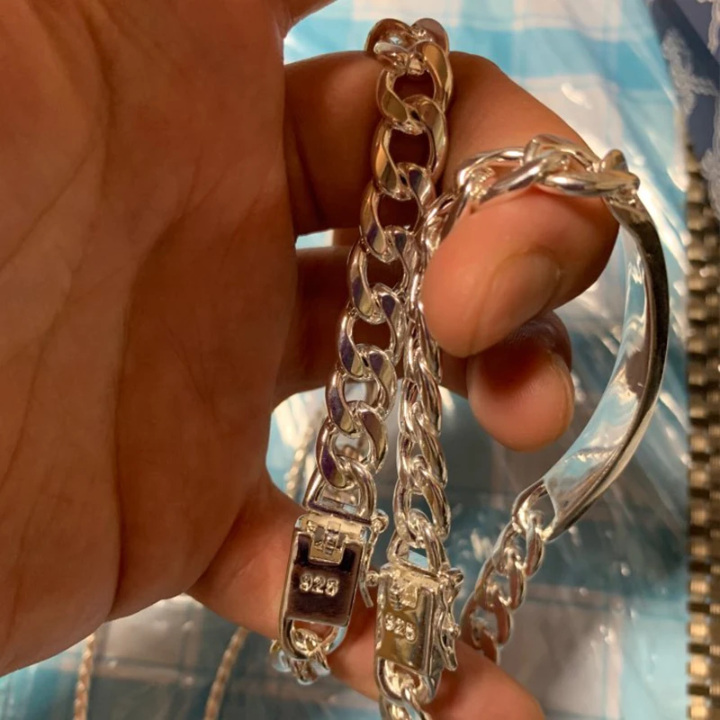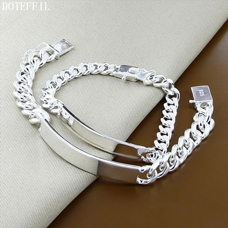 DOTEFFIL – Bracelet en argent Sterling 925, 2 pièces, chaîne latérale lisse de 10mm pour hommes et femmes, bijoux de fête de fiançailles et de mariage