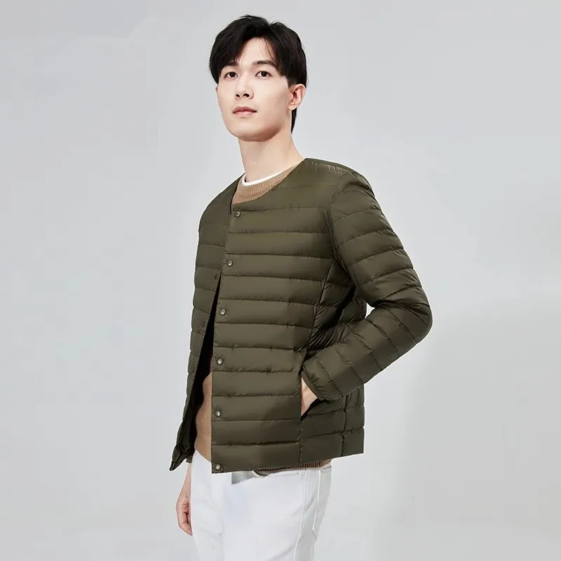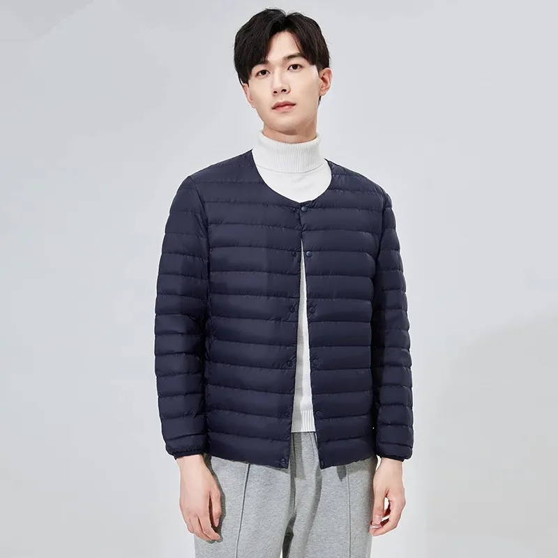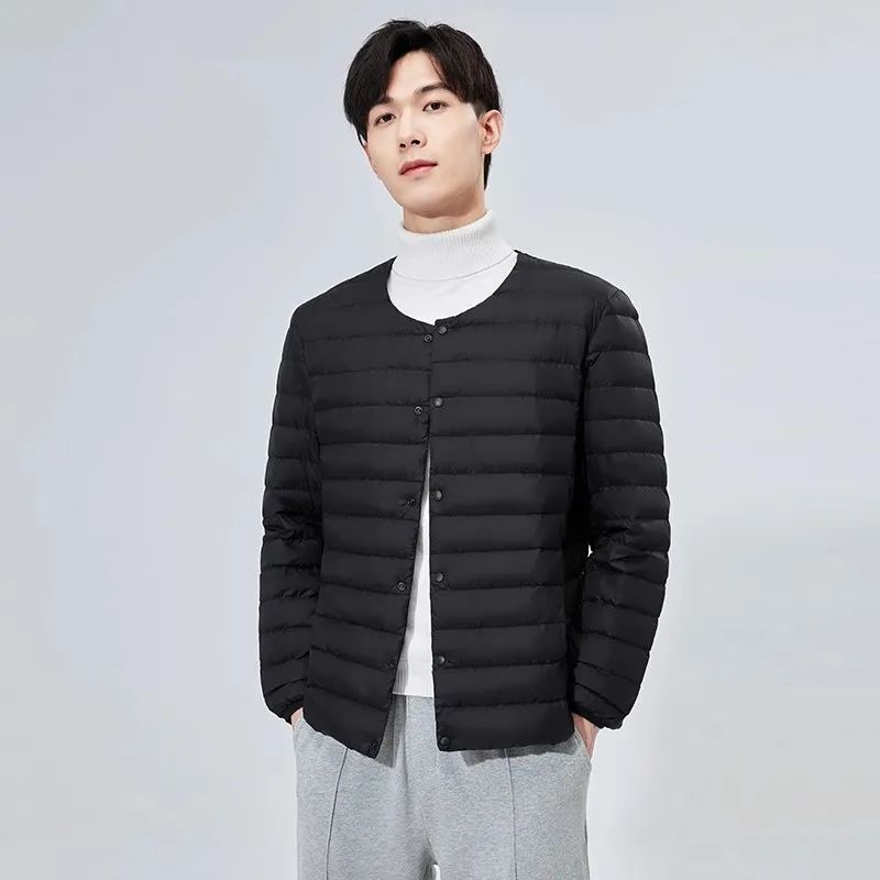 Doublure en duvet ultra légère pour hommes, vestes d'hiver, mode coréenne décontractée, porter à l'intérieur, col rond, compressible, combinaison bouffante, nouveautés, 2024