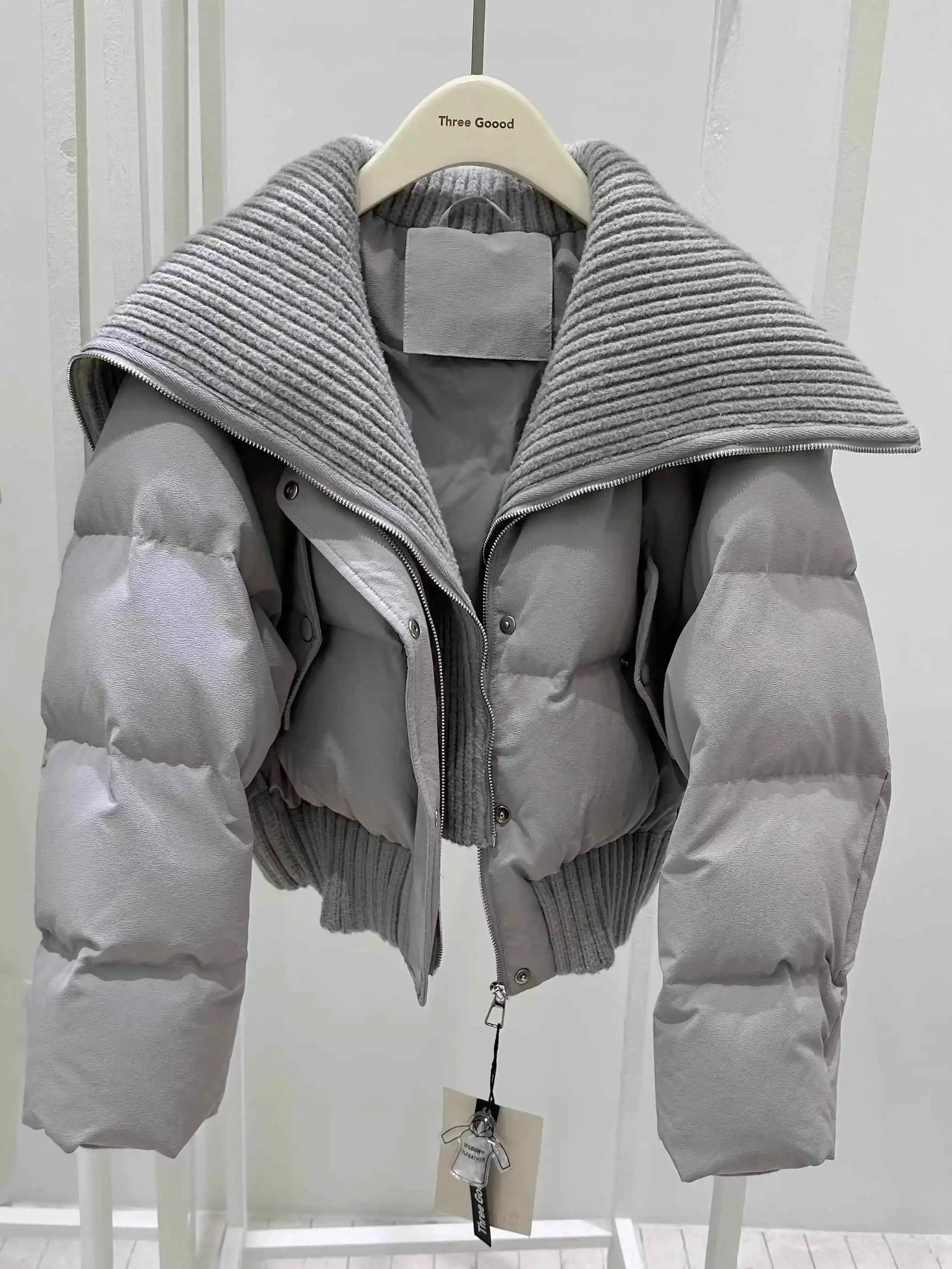 Doudounes taille haute pour femmes, manteau bouffant court, fermeture éclair, grand revers, optique mince, décontracté, chaud, mode féminine, hiver