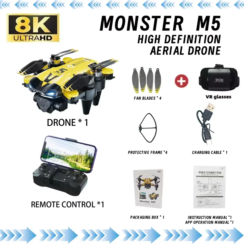 Faites l'expérience d'une imagerie aérienne inégalée avec le drone M5, votre quadricoptère de qualité professionnelle conçu pour les amateurs, les passionnés de photographie et les explorateurs de plein air.quipé d'un système avancé à triple caméra 8K, ce drone offre des photos aériennes ultra haute résolution, des vidéos 8K nettes et une reproduction des couleurs vibrantes et réalistes, parfait pour la photographie de paysage, la visualisation architecturale et la capture d'action dynamique.Obtenez des visuels époustouflants avec des détails et une clarté exceptionnels à chaque prise de vue.