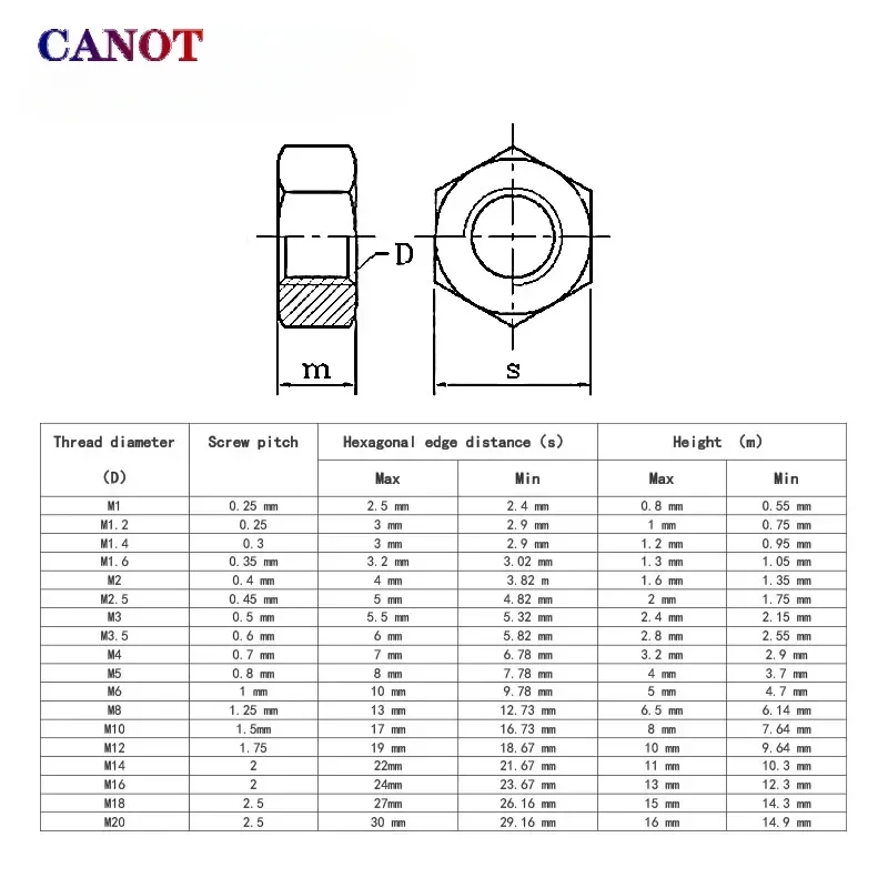 Nom du produit : écrous hexagonaux M1 M1.2 M1.4 M1.6 M2 M2.5 M3 M3.5 M4 M6 M8 M10 M14 M16 M18 M20 écrou hexagonal 304 en acier inoxydable DIN934 métriqueCouleur du produit: argentMatériau : acier inoxydable 304.