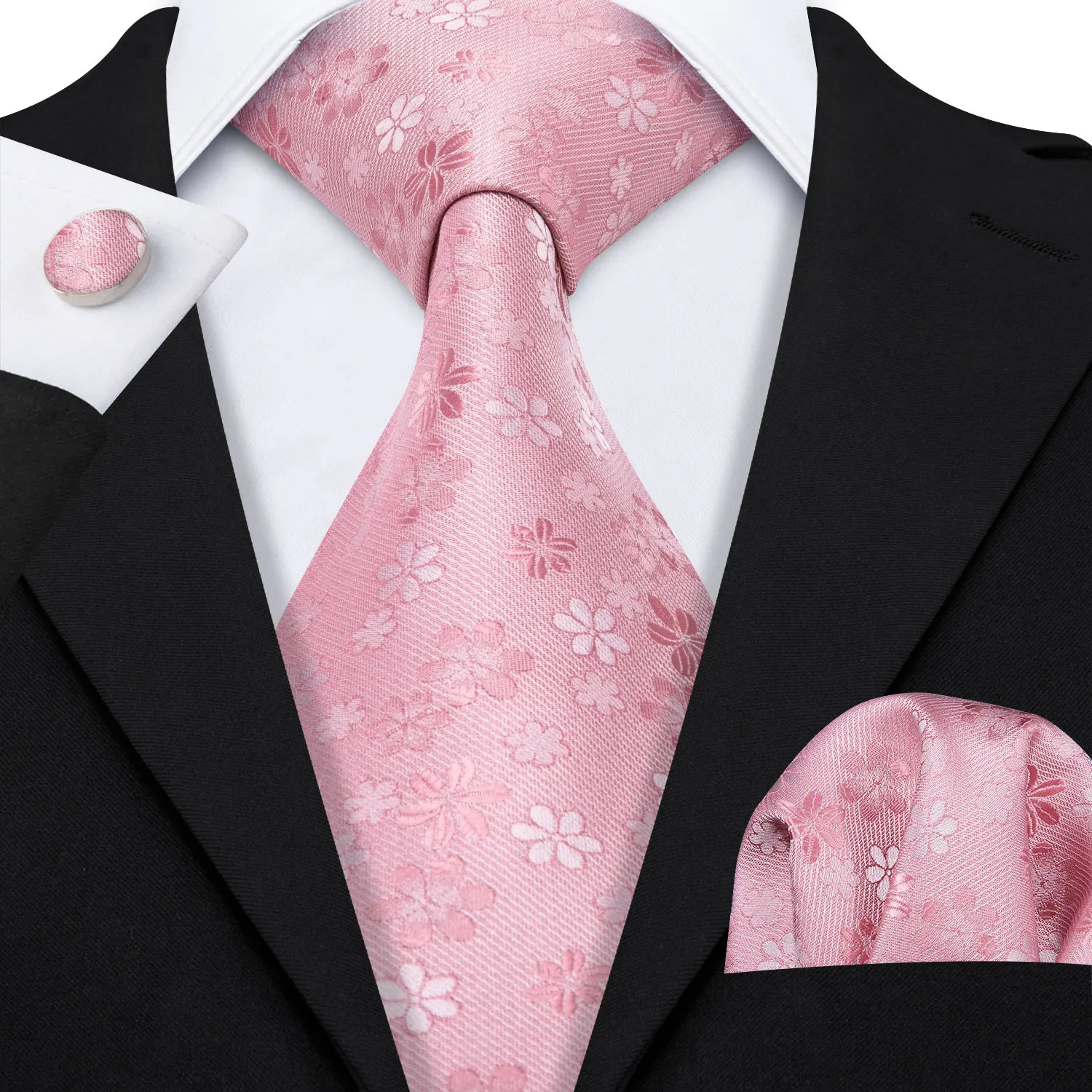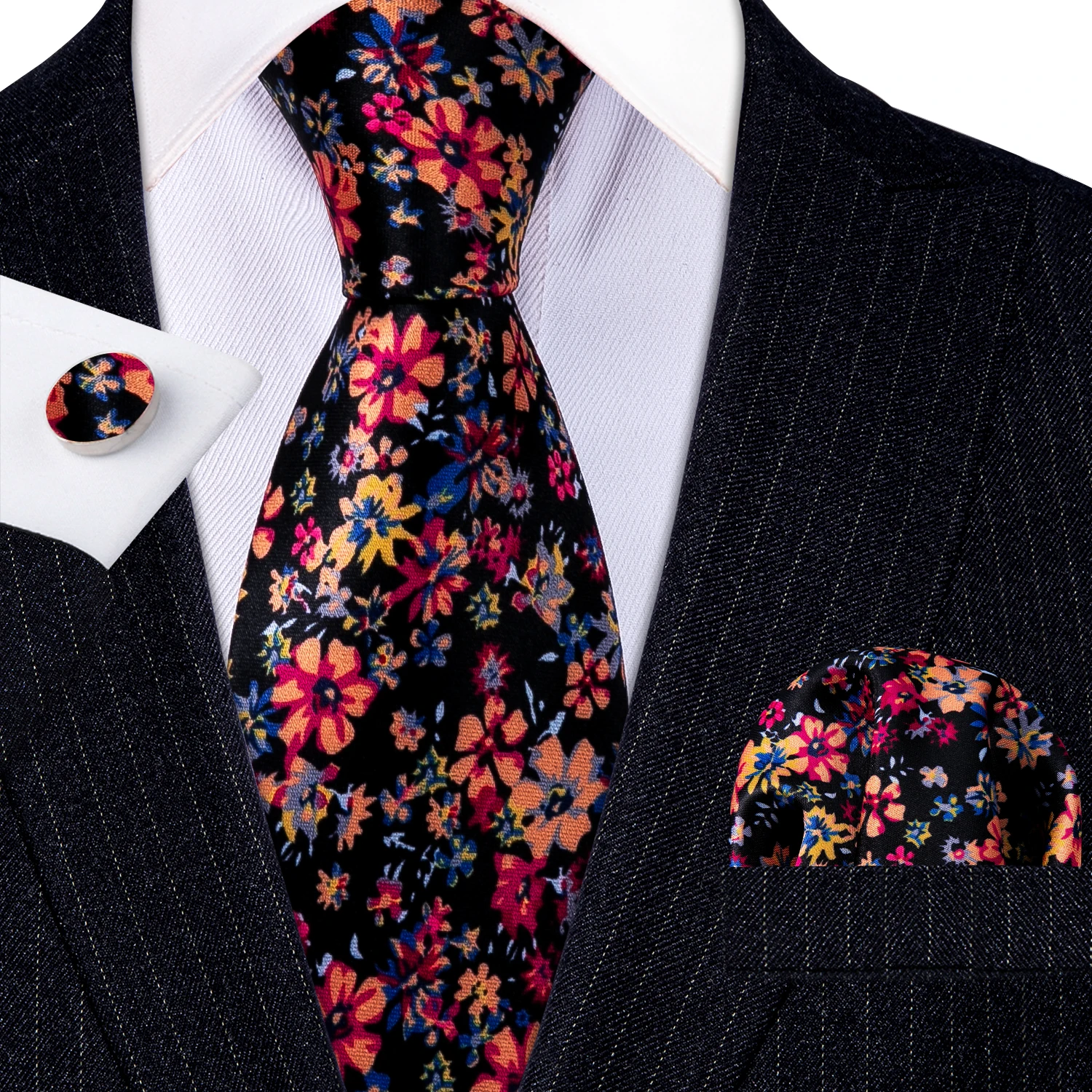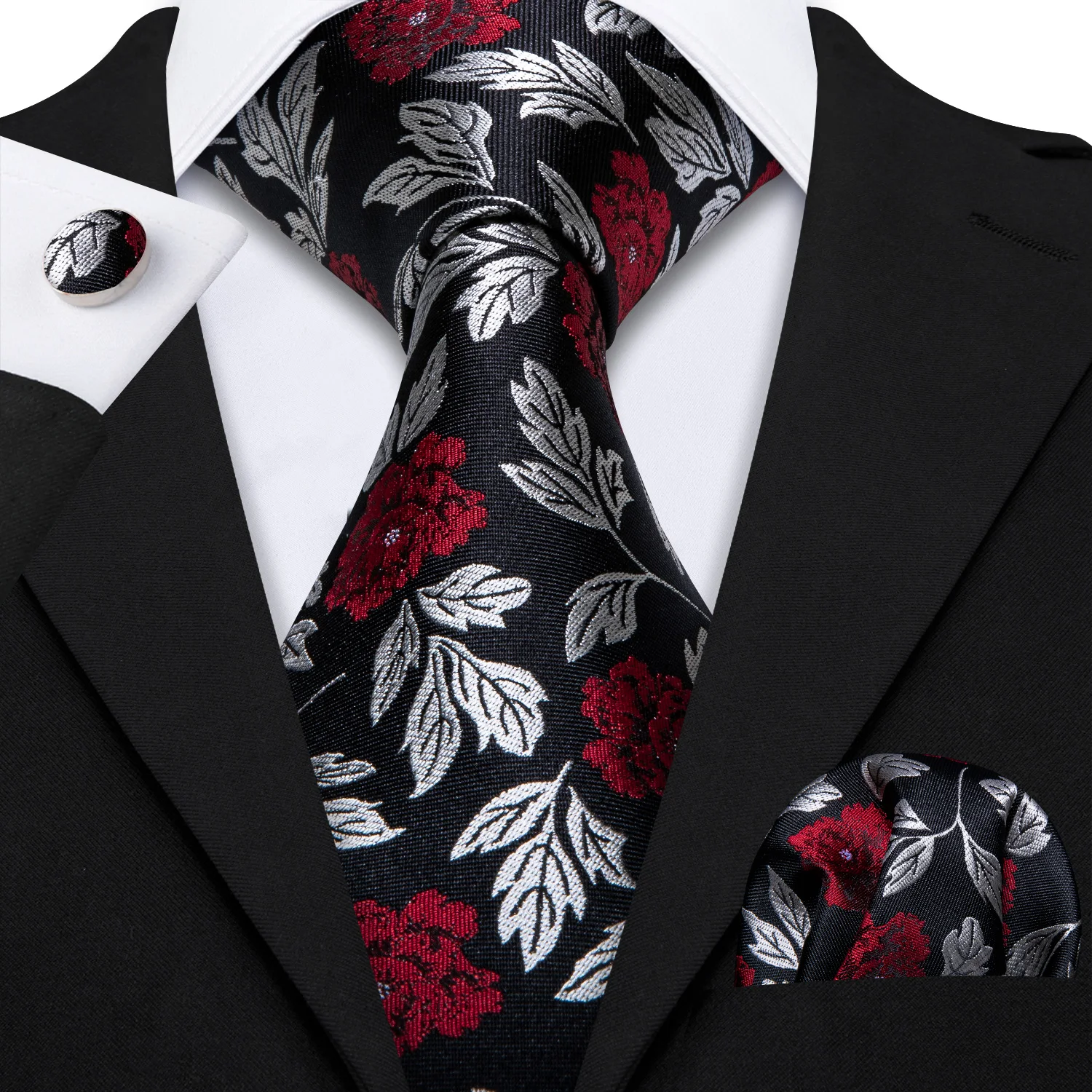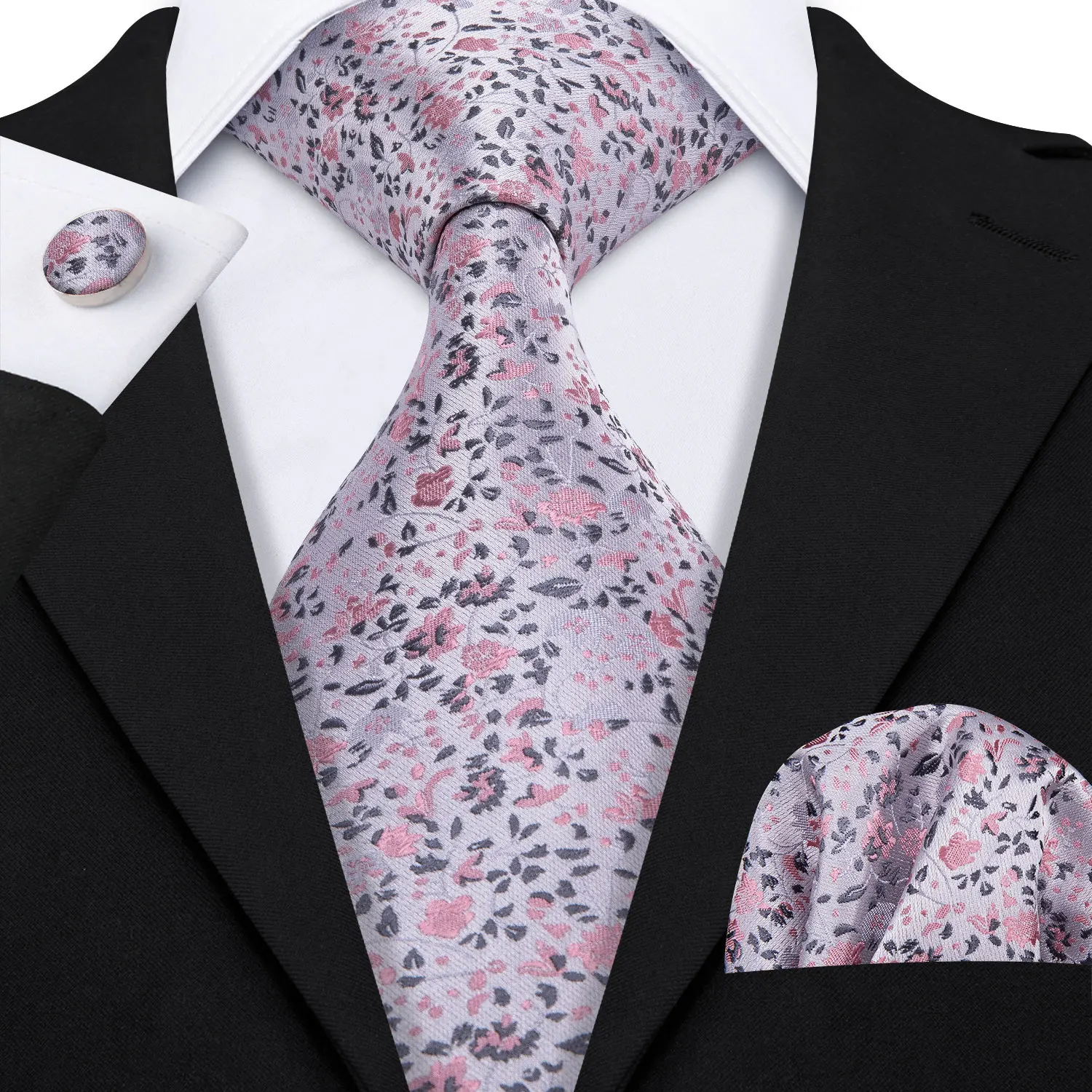 Élégant Multi Floral soie hommes cravate Hanky boutons de manchette ensemble Jacquard fleur cravate pour homme mariage affaires fête événement Barry.Wang