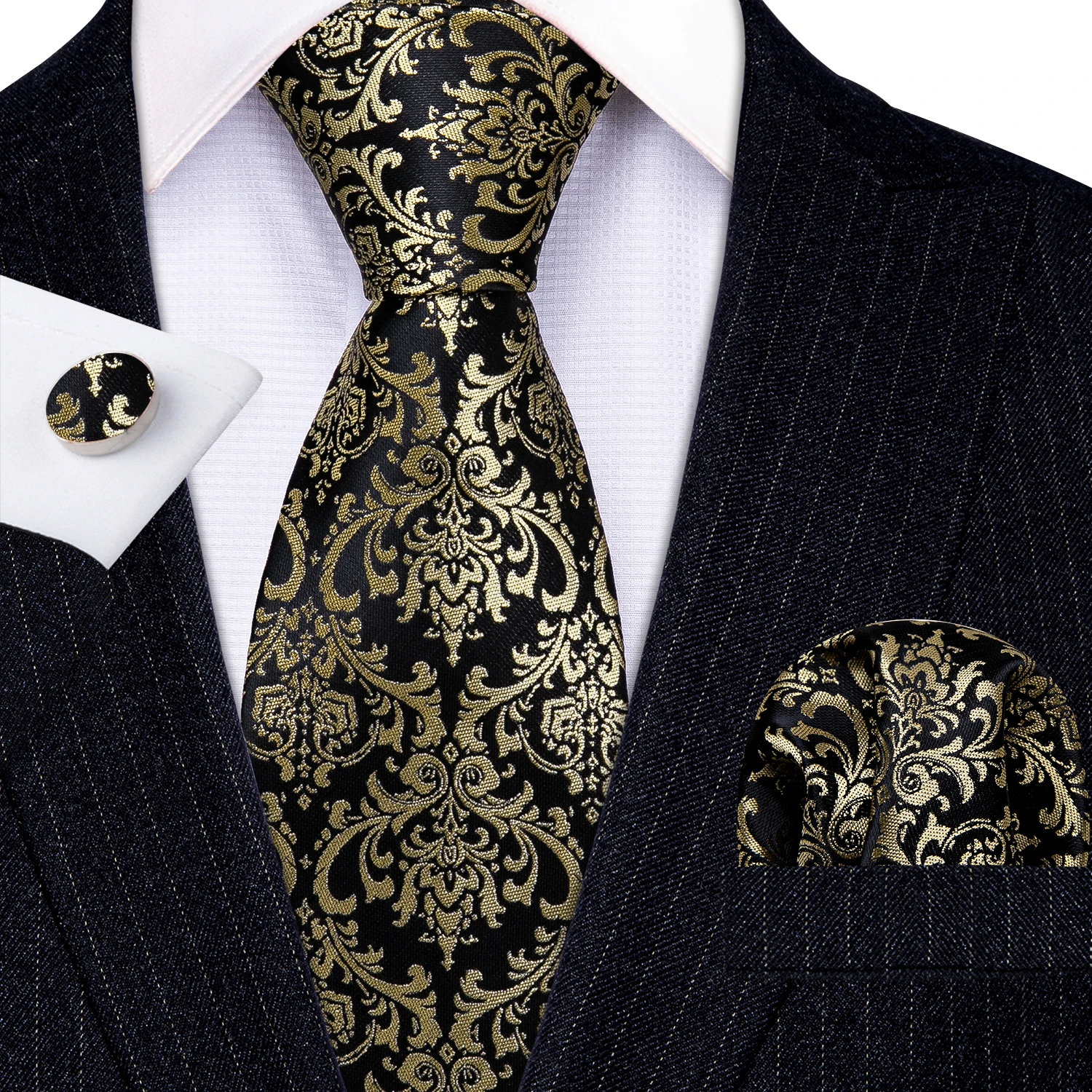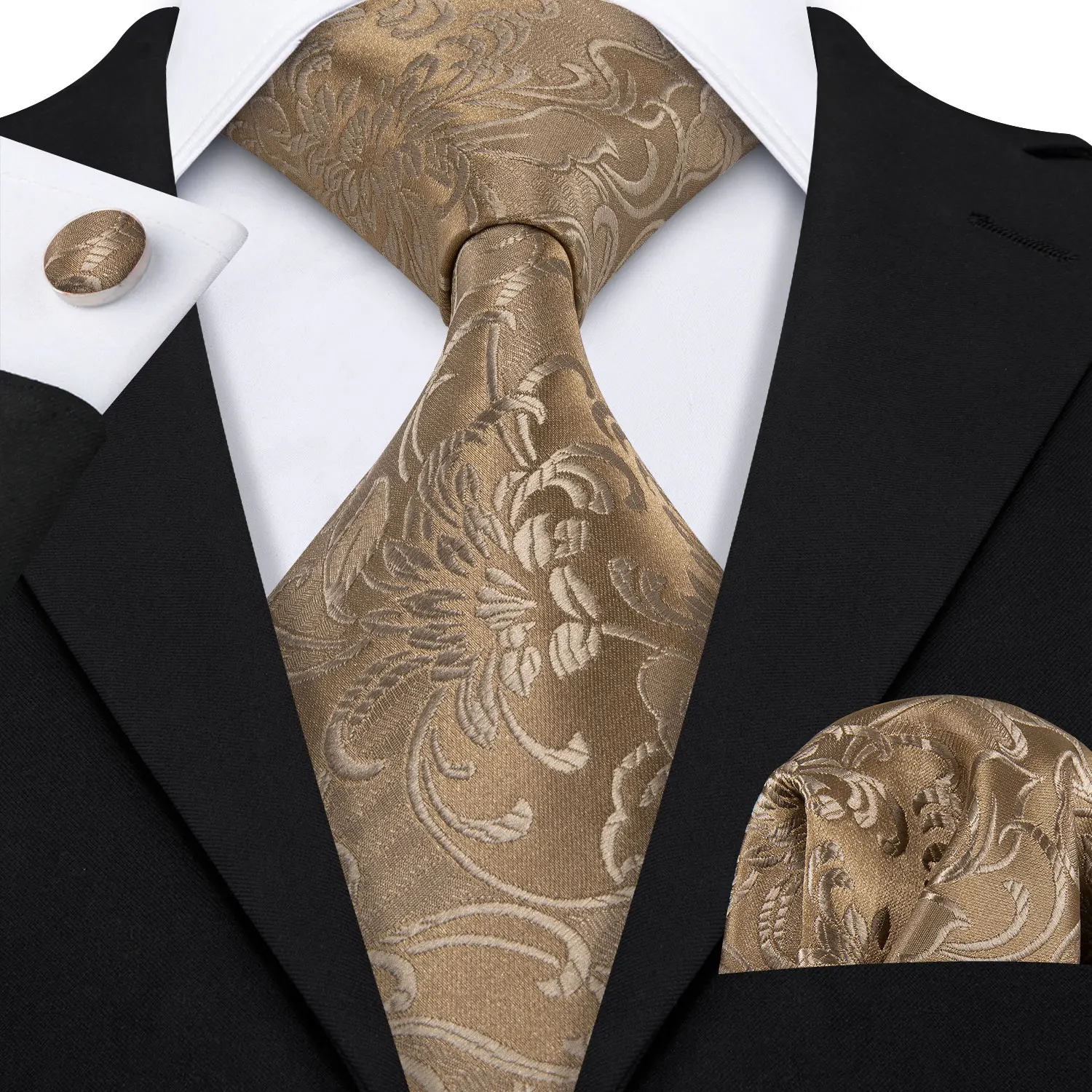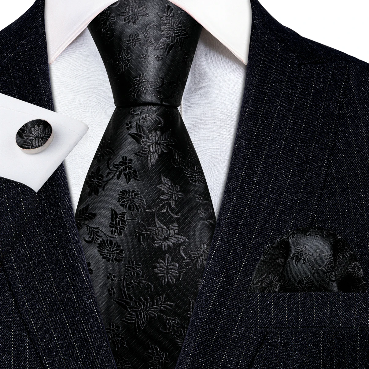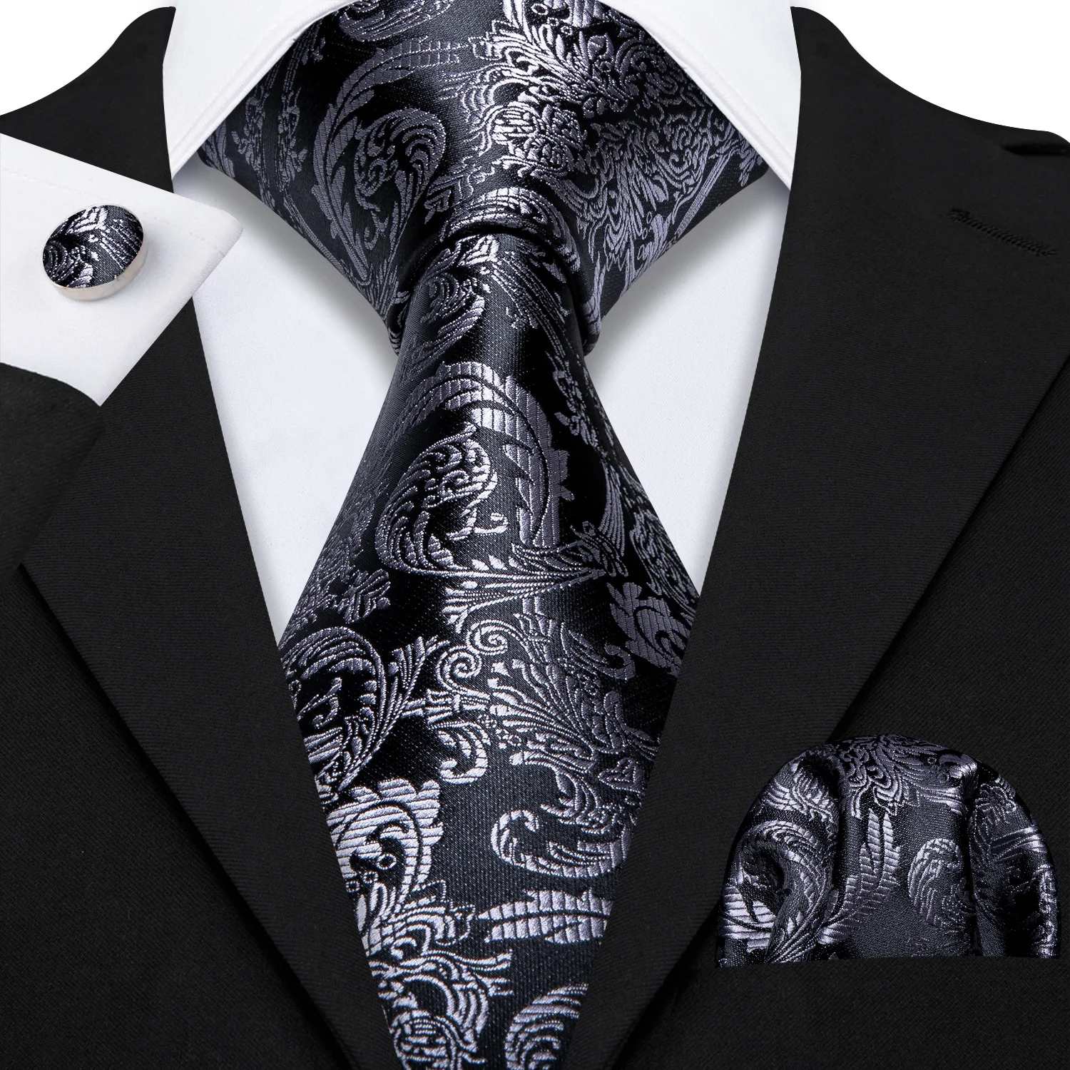 Élégant Multi Floral soie hommes cravate Hanky boutons de manchette ensemble Jacquard fleur cravate pour homme mariage affaires fête événement Barry.Wang