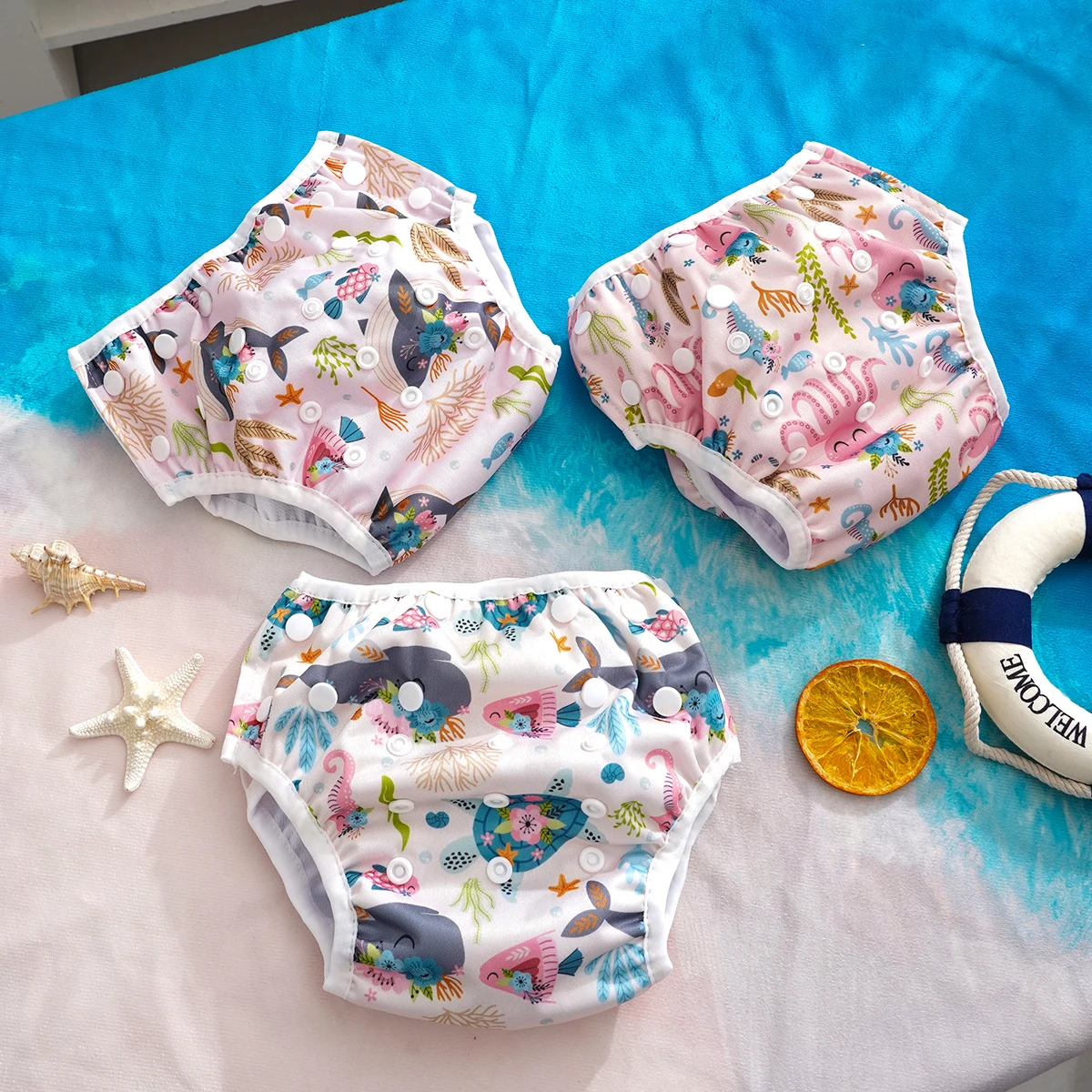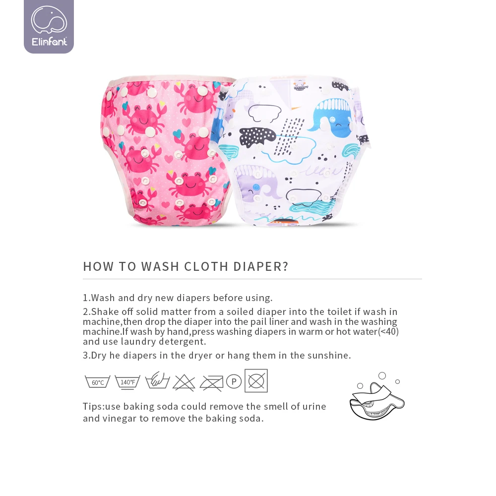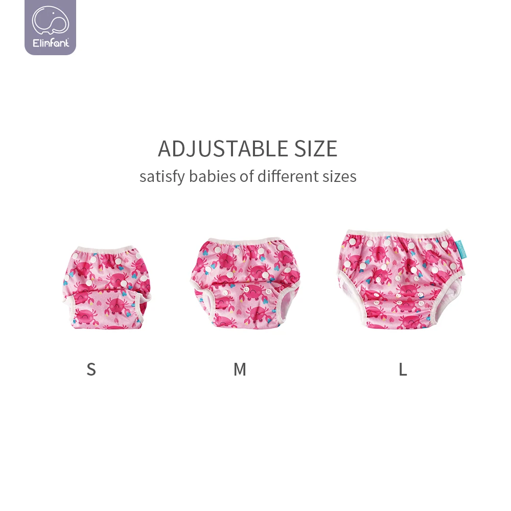 Elinfant 3 pièces ensemble de couches de bain pour bébé bébé et enfant en bas âge Snap taille unique 3-15kg bébé réglable réutilisable lavable couche de bain pour bébé