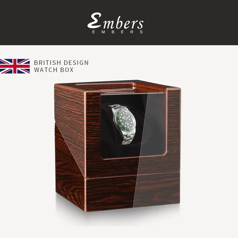 Embers Luxry remontoir de montre unique batterie secoueur en bois boîte de montre remontoir automatique mallette de rangement en verre Mabuchi Motro