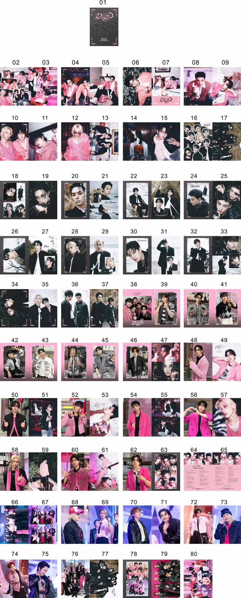 Contenu complet Avec 80 pages de cartes photo de haute qualité, cet album propose une collection complète de moments star de STRAY KIDS. Utilisation polyvalente Qu'il s'agisse d'un cadeau de vacances ou d'une collection personnelle, cet album photo constitue un article polyvalent pour toute occasion. Marchandise authentique En tant que produit officiel SKZOO, cet album est un incontournable pour les fans de STRAY KIDS, offrant un contenu authentique et exclusif. Produits finis Cet article de produits finis est prêt à être utilisé immédiatement, éliminant ainsi le besoin de montage ou de réalisation. Matériau de haute qualité Fabriqué à partir de matériaux de première qualité, cet album photo garantit une durabilité et une protection durables pour vos précieux souvenirs.