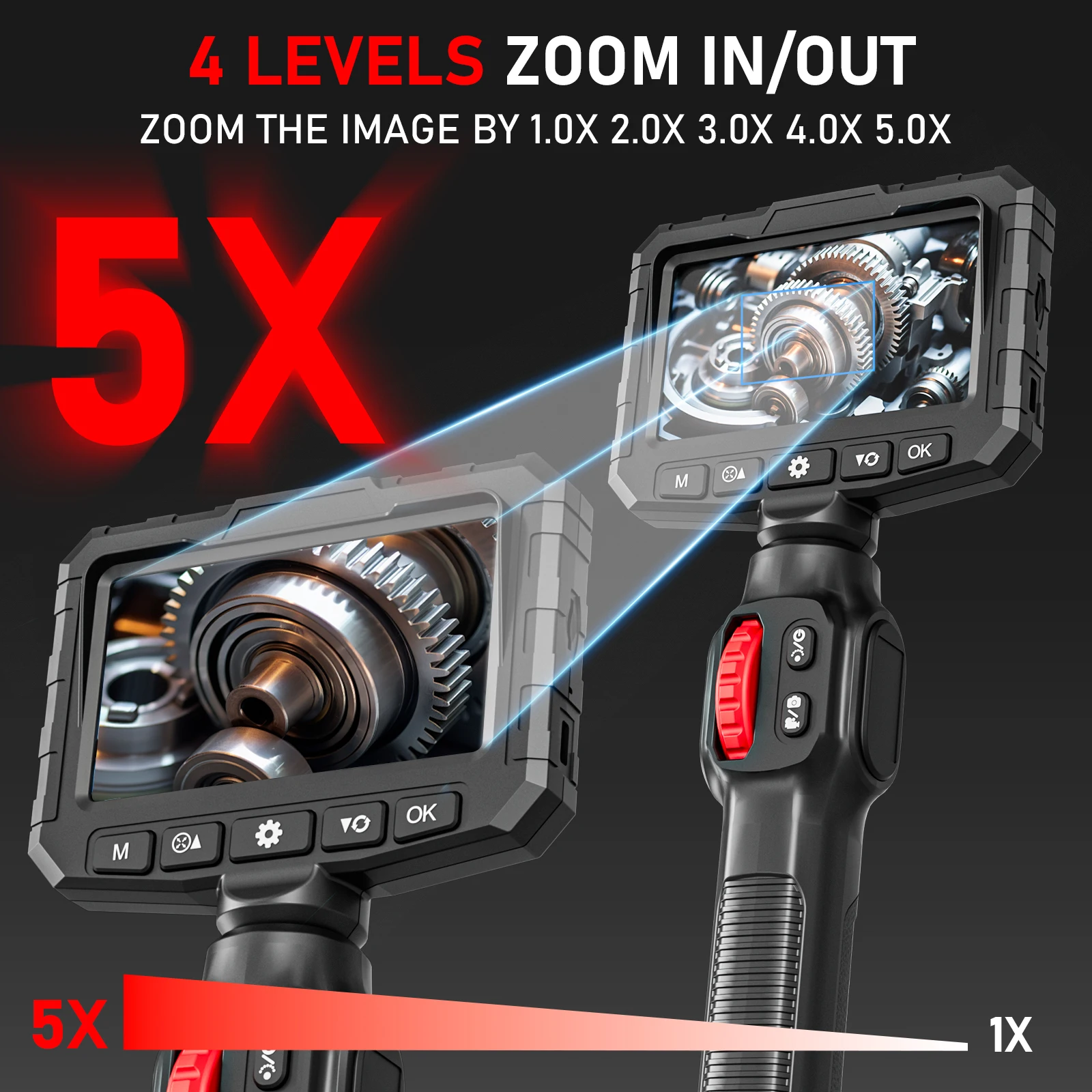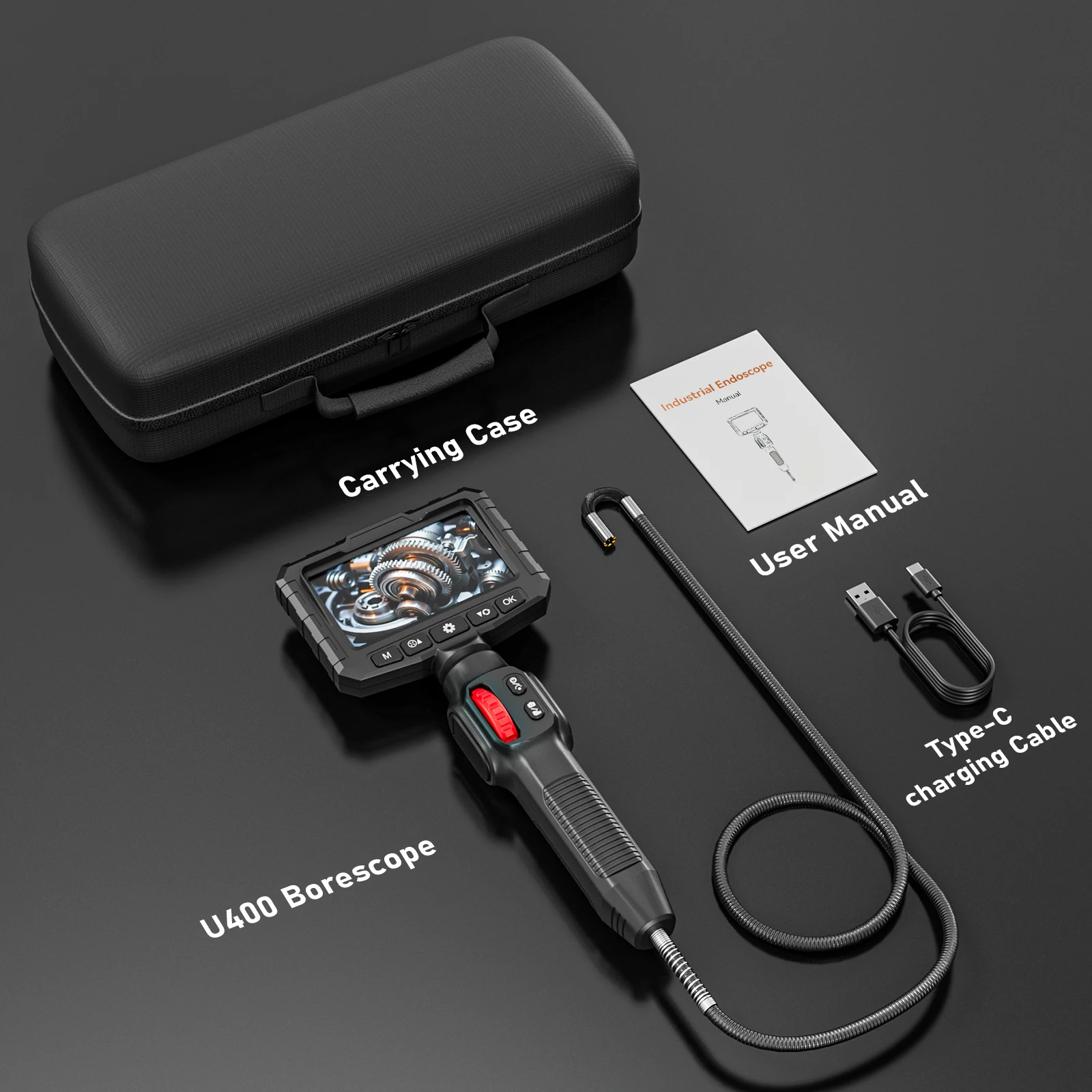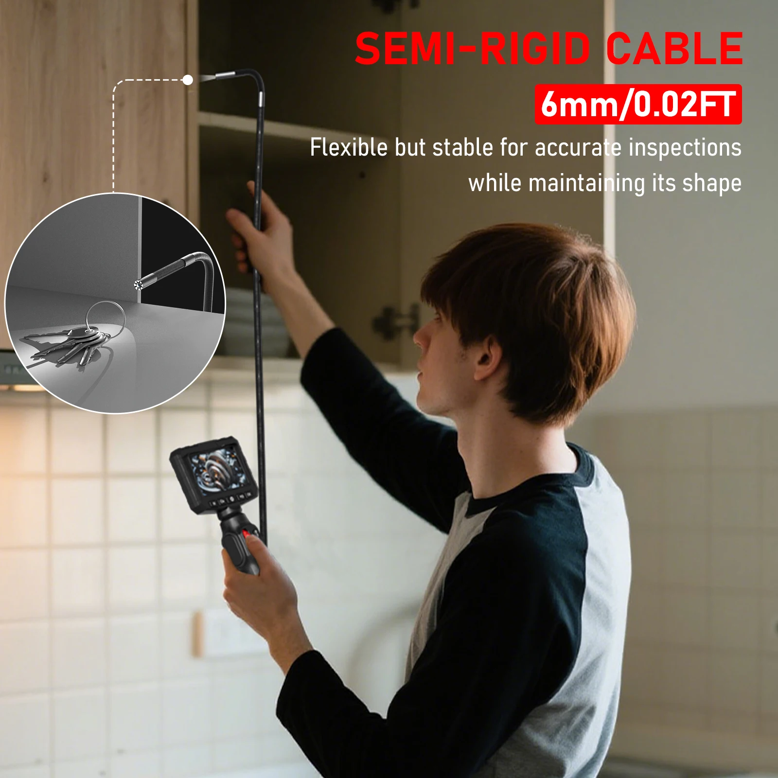 Des batteries de grande capacité de 2 600 mAh sont disponibles pour prendre en charge le travail 4H.L'endoscope articulé peut prendre en charge les photos et vidéos avec 1920*1080P.La caméra rotative serpent à cordon de 3,3 pieds peut facilement naviguer dans des espaces restreints pour une inspection approfondie.