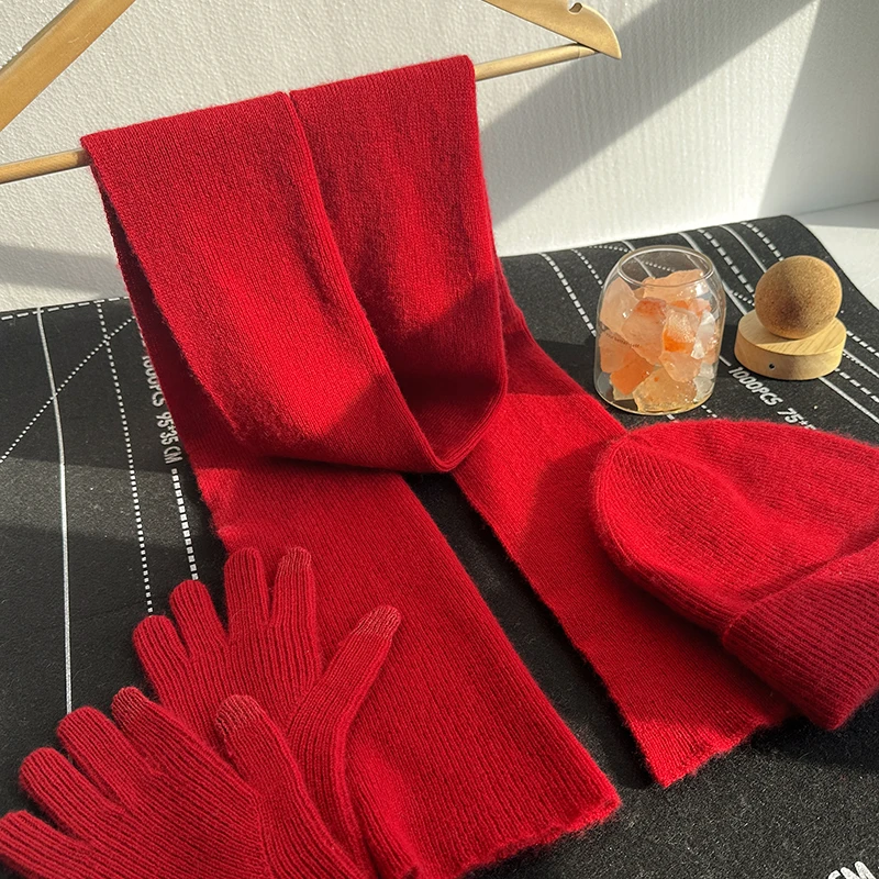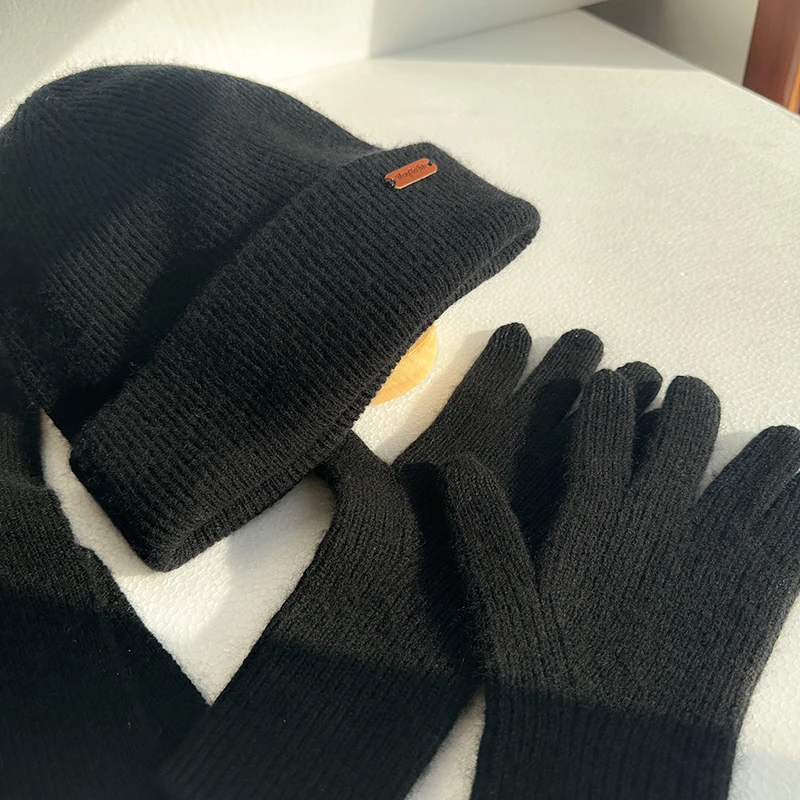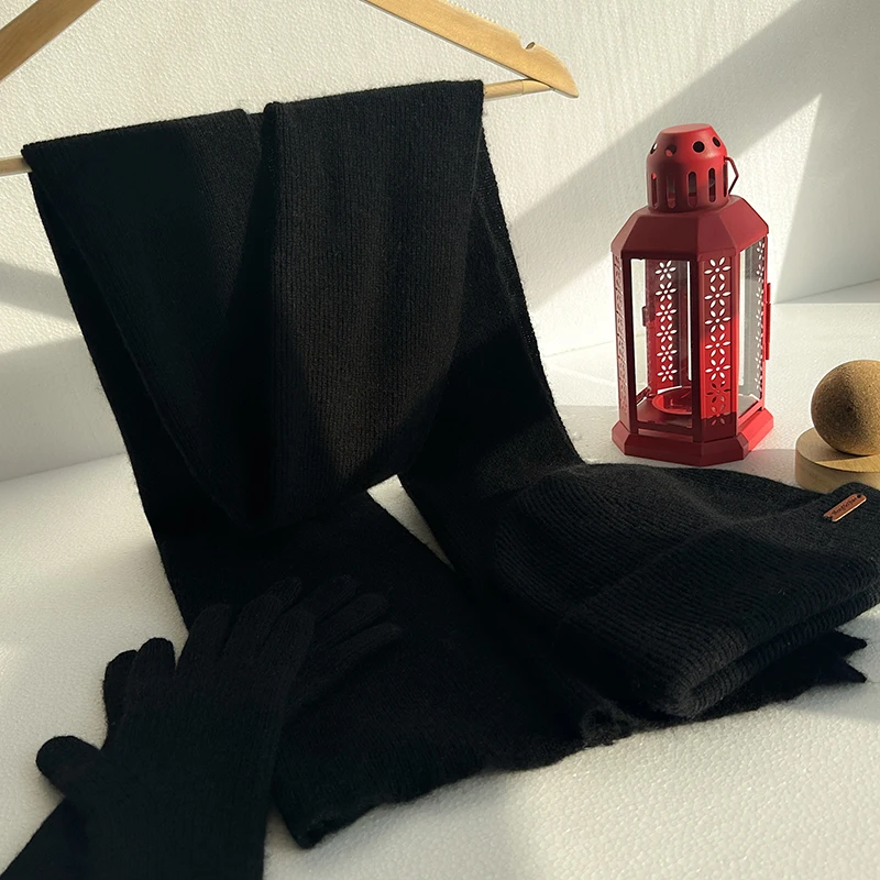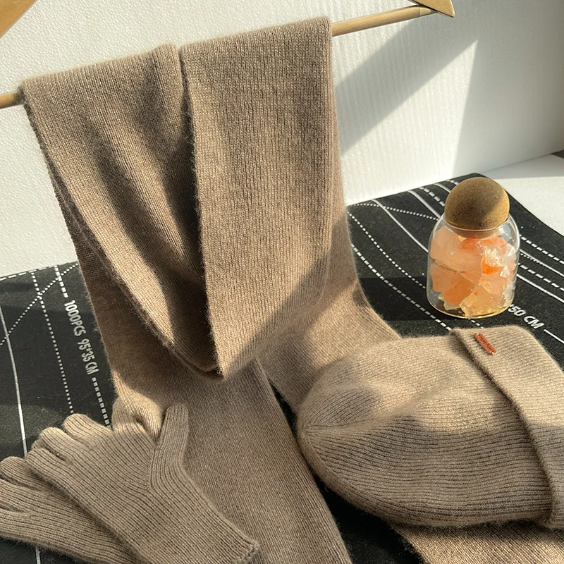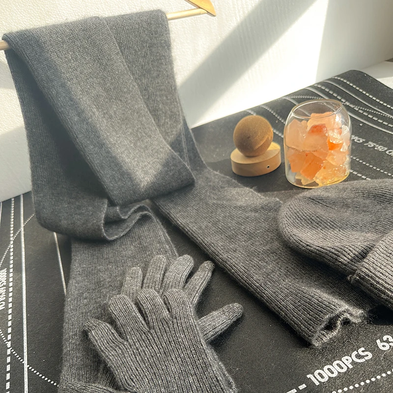 Ensemble 3 pièces écharpe + gants + chapeau pour hommes et femmes, 100% pur cachemire, chaud et à la mode, gants à écran tactile, haute qualité, hiver