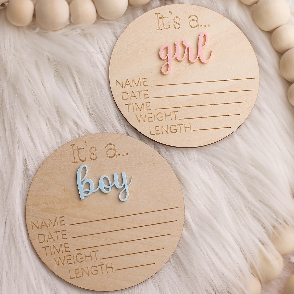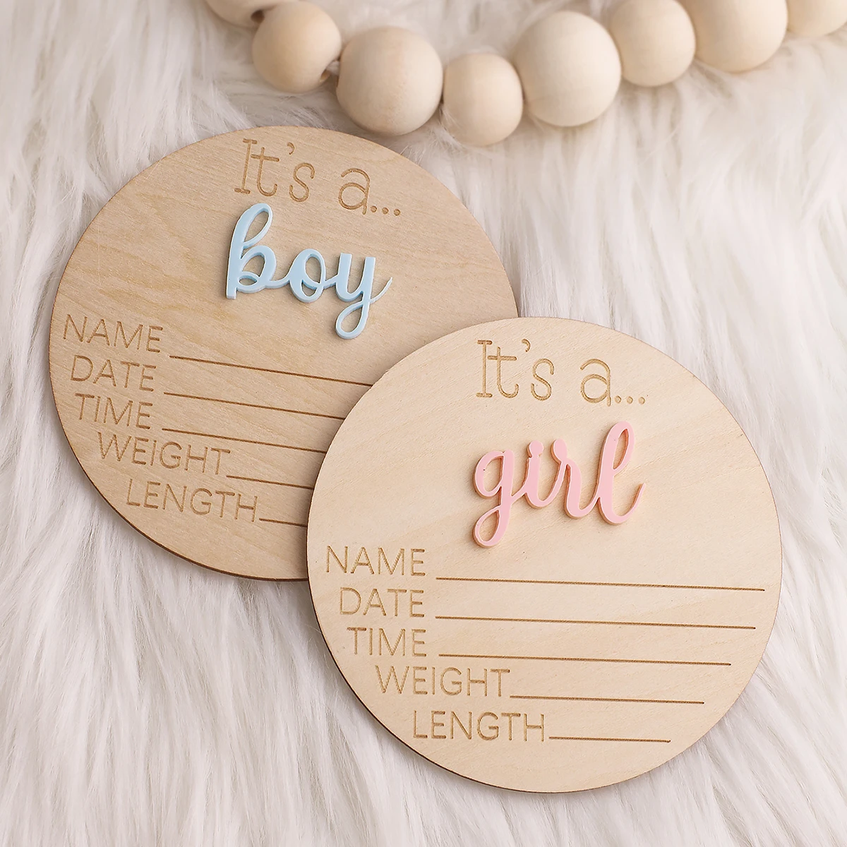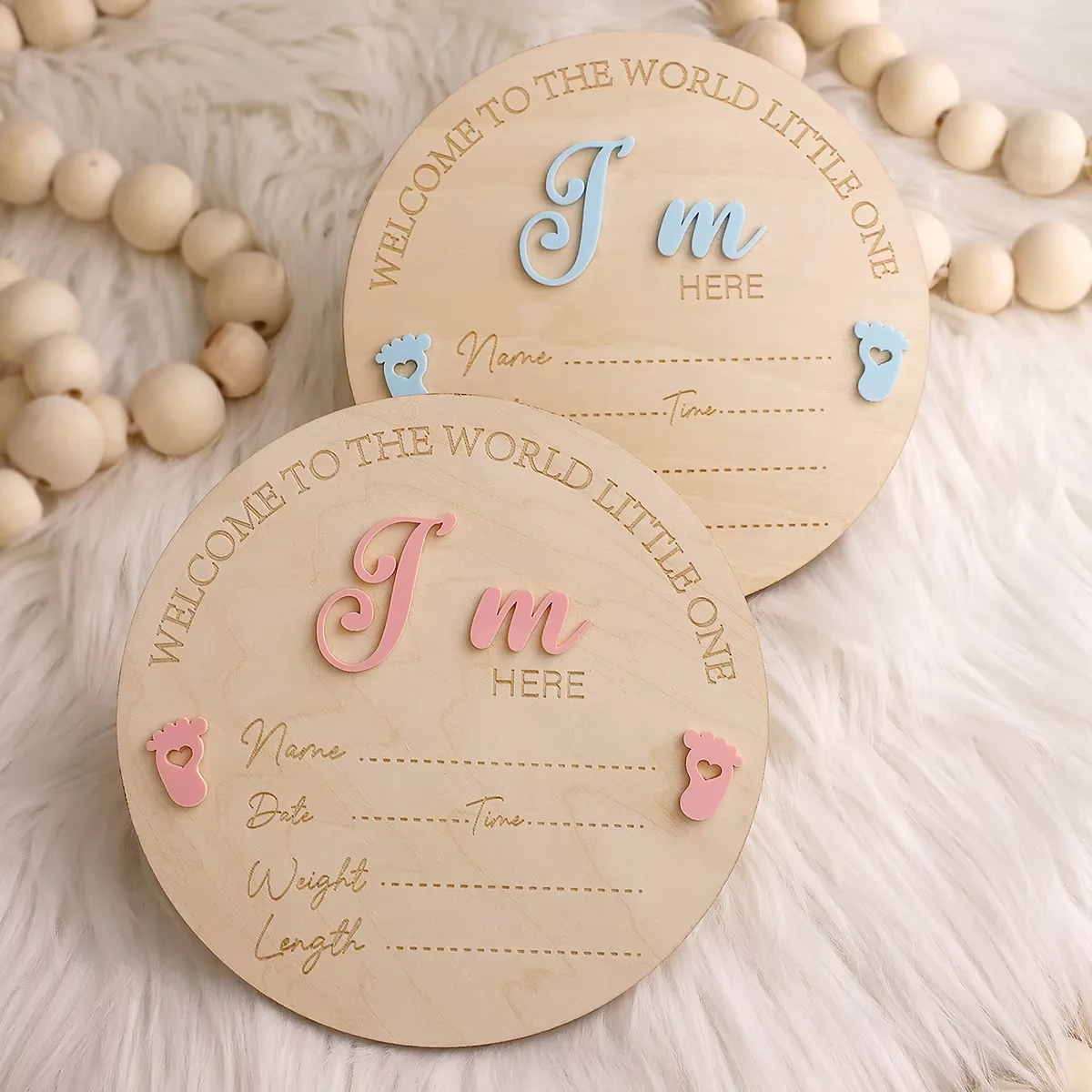 Ensemble de 2 pièces de signe de nouveau-né Hello World, accessoires Photo pour hôpital, je suis un garçon, une fille, signe en bois, signe d'annonce de naissance de bébé
