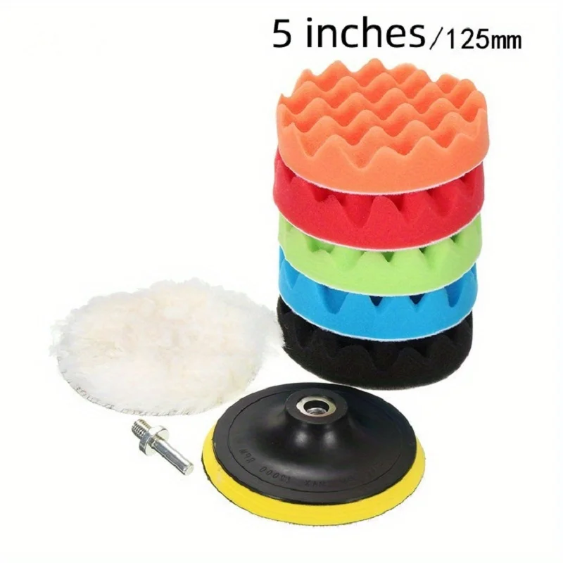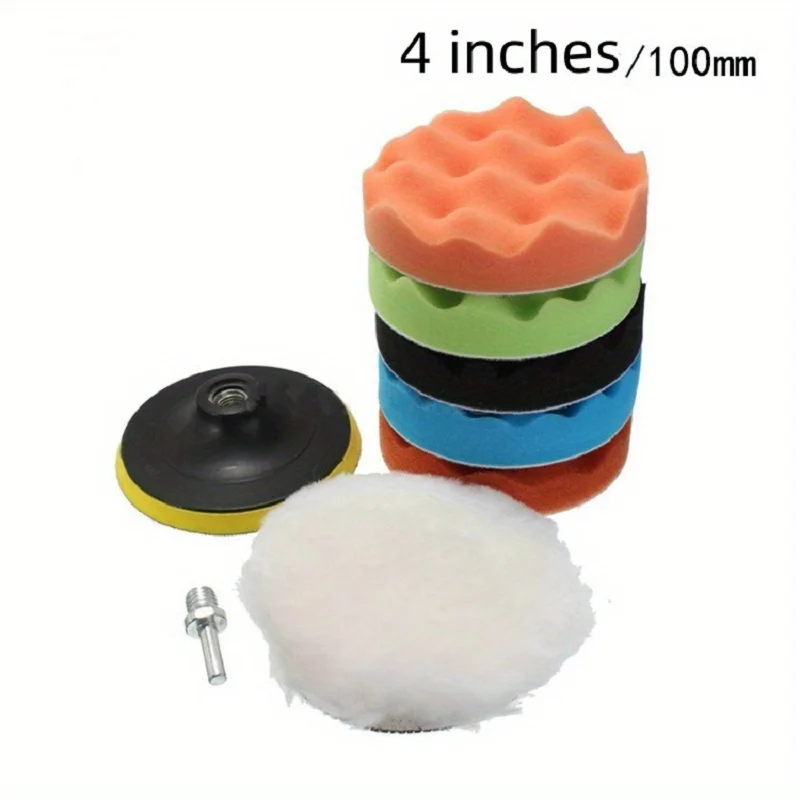 Ensemble complet : livré avec 8 pièces de tampons de polissage autocollants, des roues en laine et des tampons de polissage en éponge