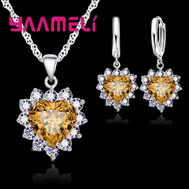 Ensemble de bijoux en argent regardé Chim925 pour femme, breloque en pierre CZ, collier et boucles d'oreilles, cadeau de travailleur d'amour