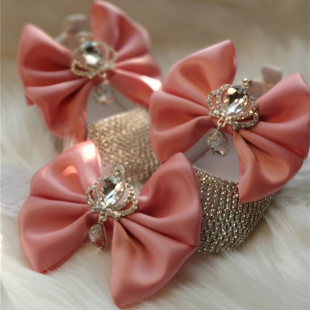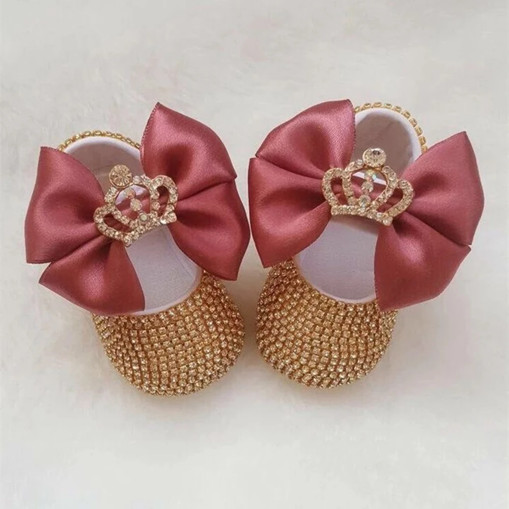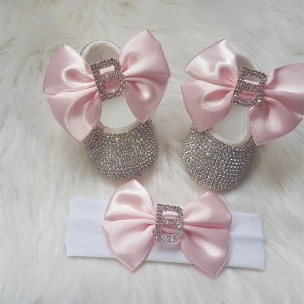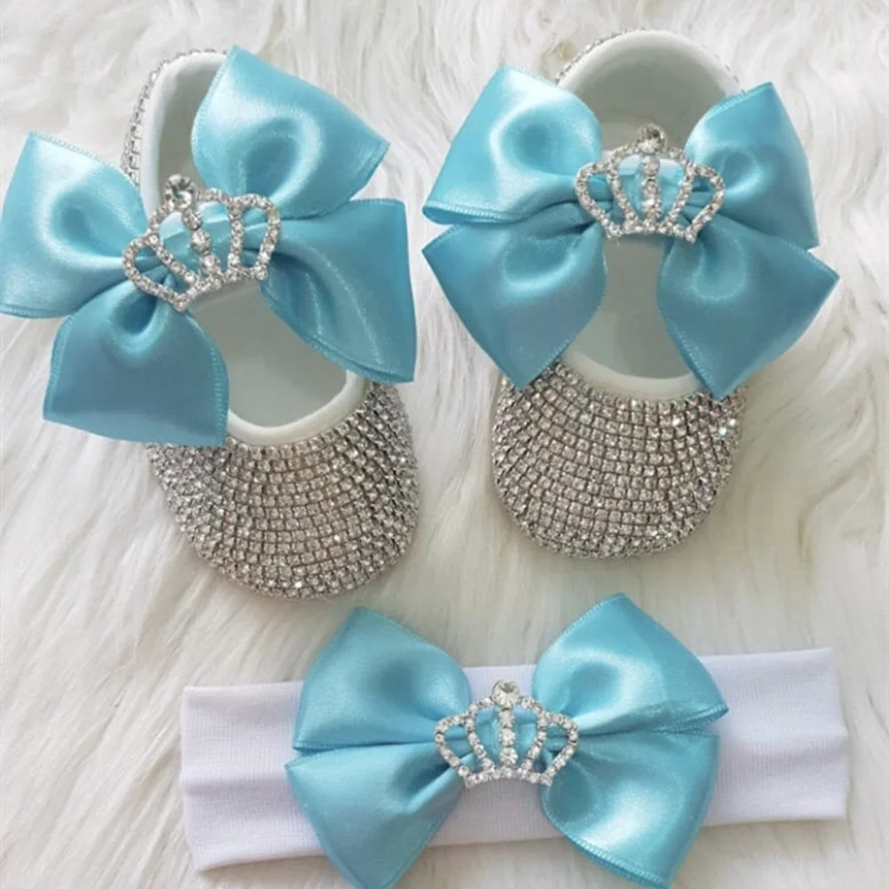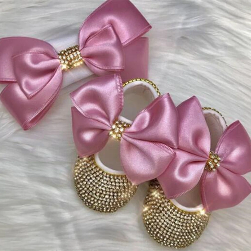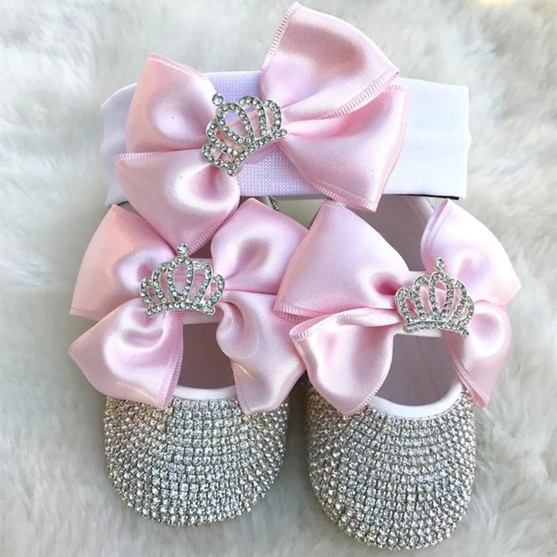 Ensemble de chaussures et bandeau en strass rose scintillant pour nouveau-né, avec couronne royale personnalisée, idéal pour la photographie de bébé fille et la décoration de chambre de bébé