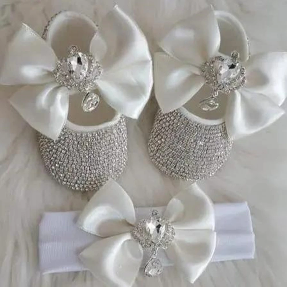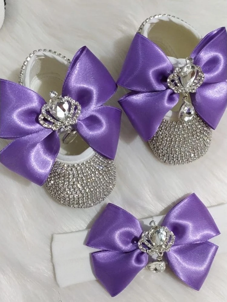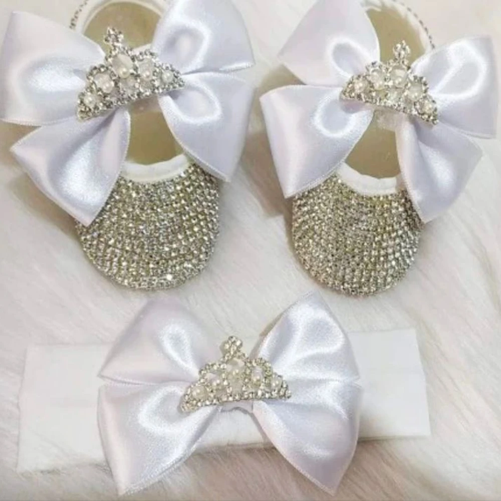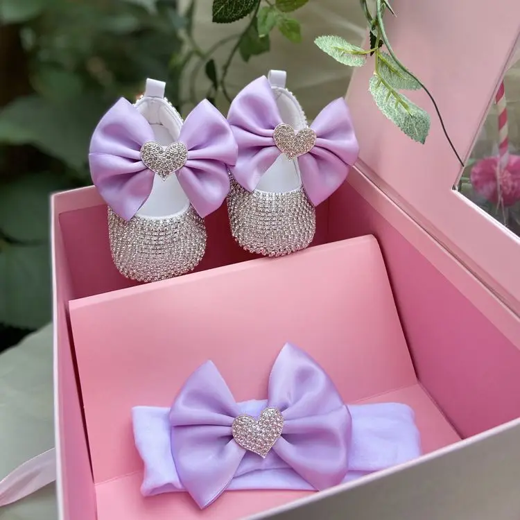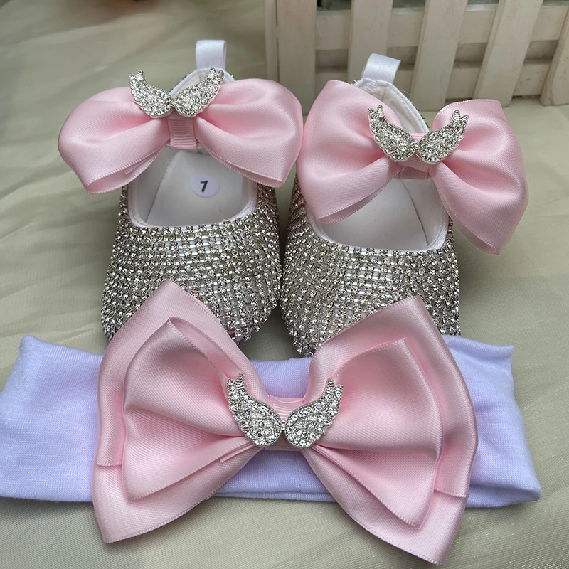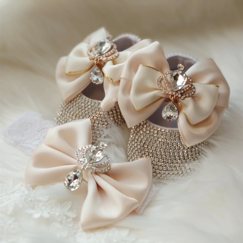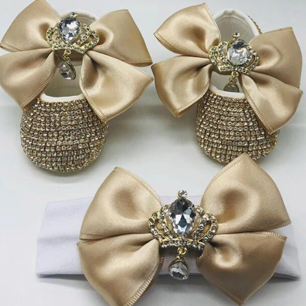 Ensemble de chaussures et bandeau en strass rose scintillant pour nouveau-né, avec couronne royale personnalisée, idéal pour la photographie de bébé fille et la décoration de chambre de bébé