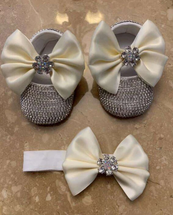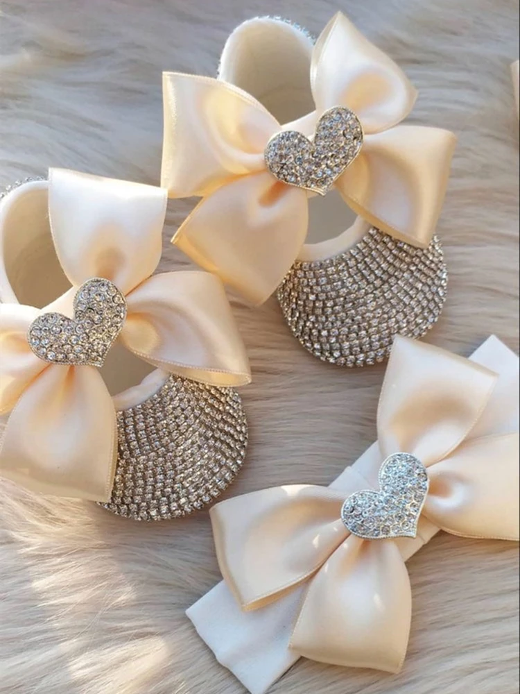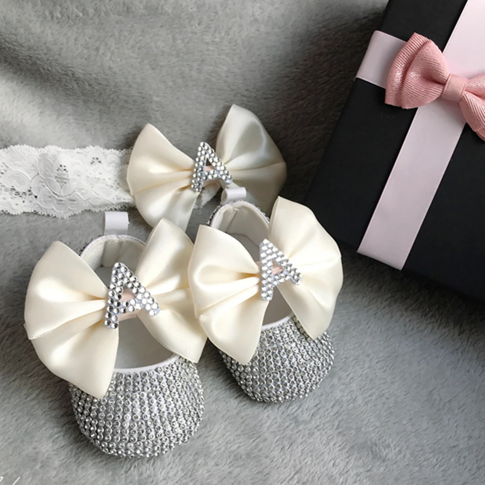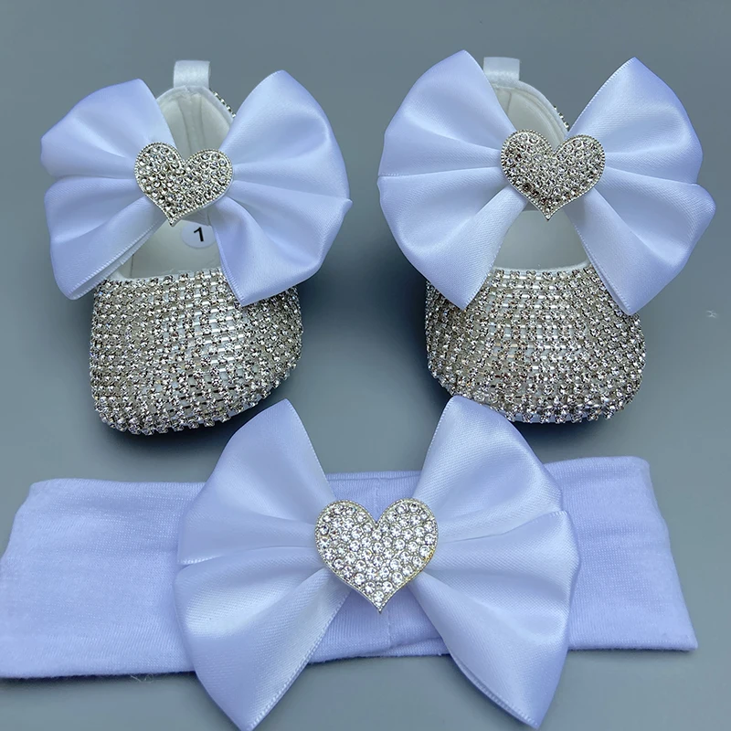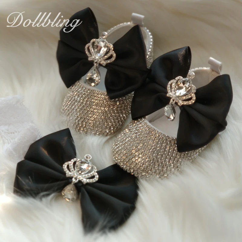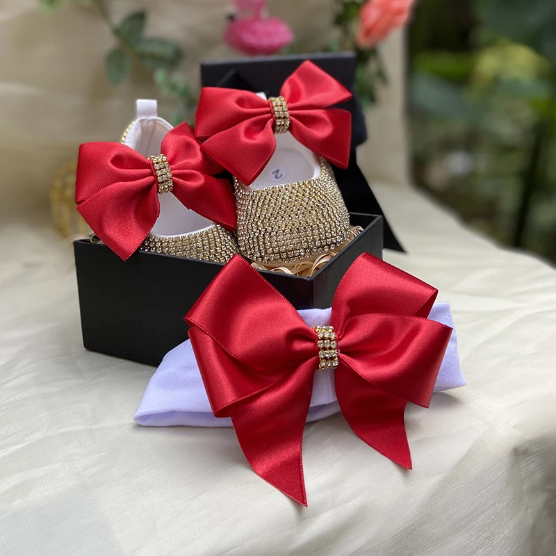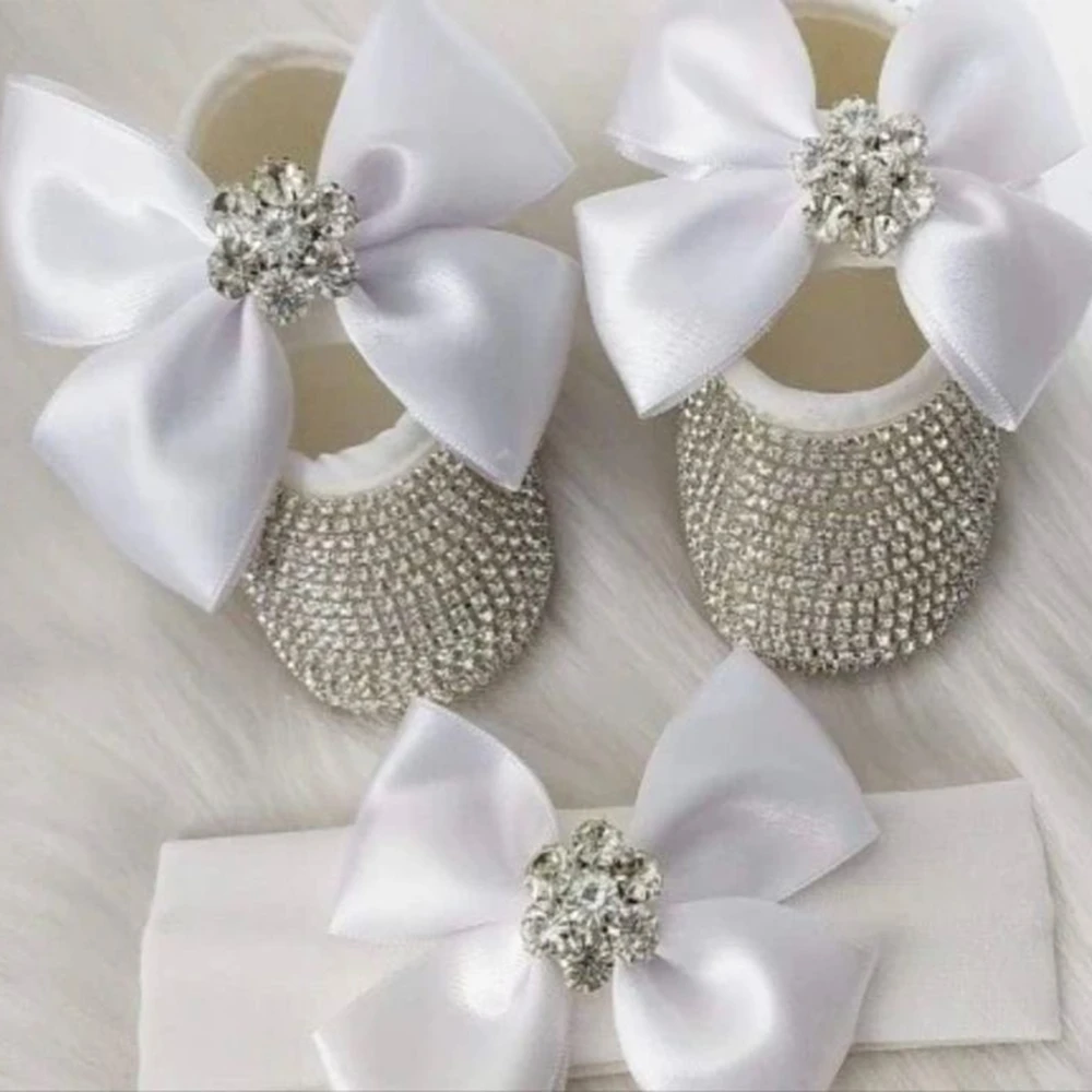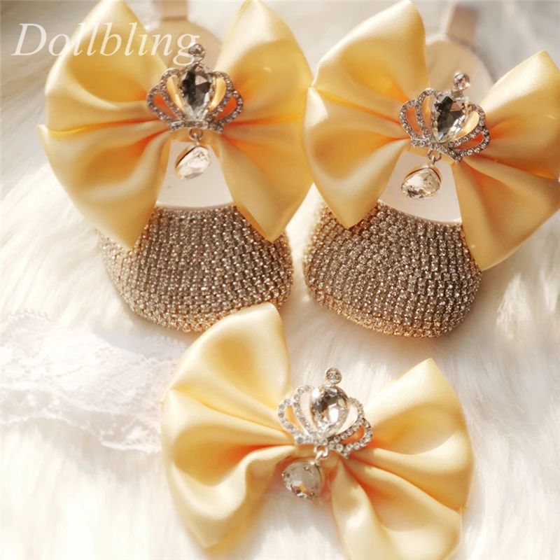 Ensemble de chaussures et bandeau en strass rose scintillant pour nouveau-né, avec couronne royale personnalisée, idéal pour la photographie de bébé fille et la décoration de chambre de bébé