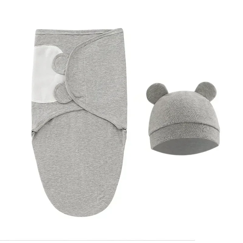 Ensemble de couverture et chapeau pour bébé de 0 à 6 mois, en coton imprimé de dessin animé, emmaillotage réglable pour nouveau-né, enveloppes de couchage pour nourrissons, toutes saisons