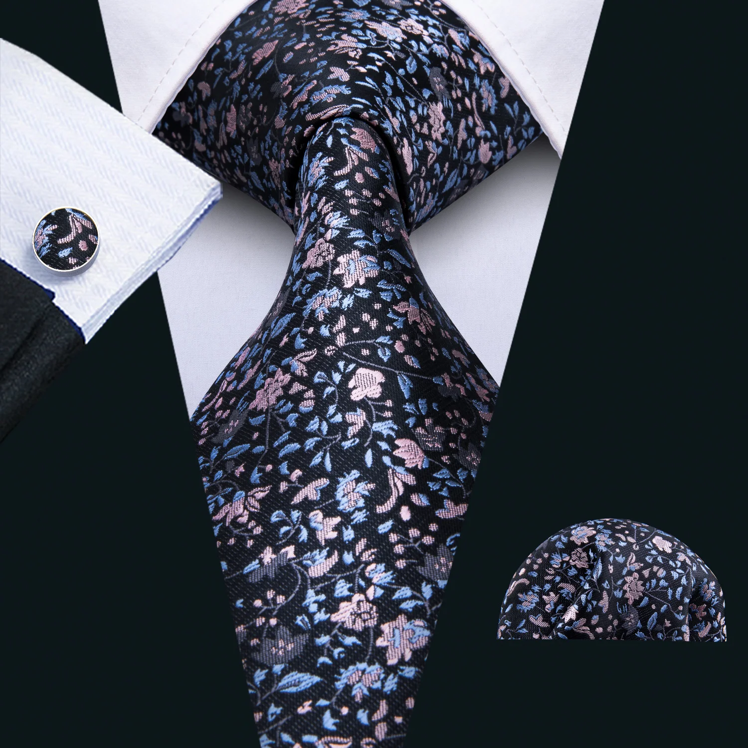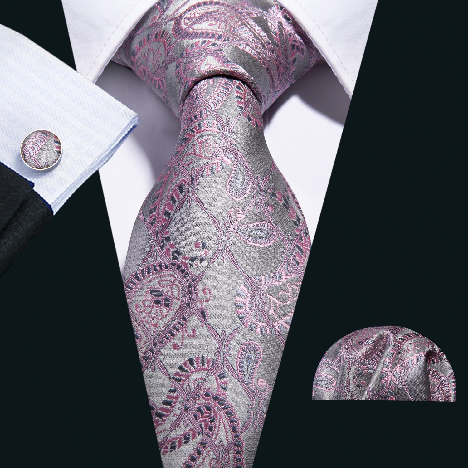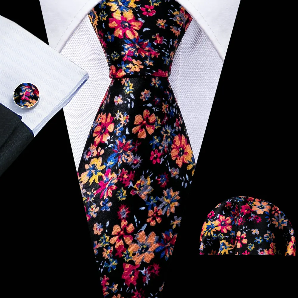 Ensemble de cravates pour hommes, imprimé rouge, en soie, Jacquard, Floral, pour mariage, affaires, mouchoir, boutons de manchette, 30 couleurs, cadeau de luxe, Barry.Wang