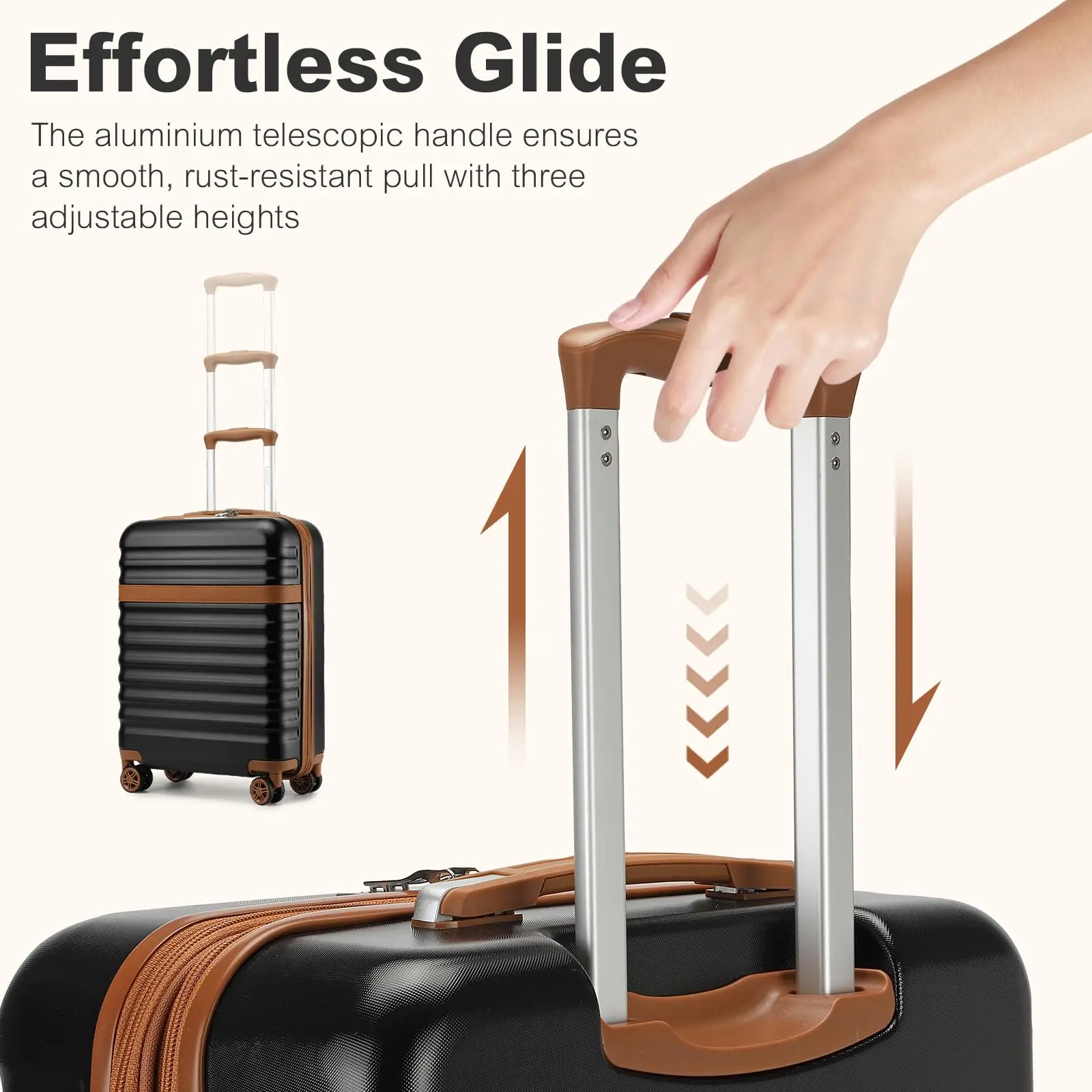Ensemble de étuis rigides KONO – Étui robuste en ABS + PC avec 4 rouleaux de verrouillage TSA, inclus. Sac à dos de voyage et trousse de toilette 3 pièces