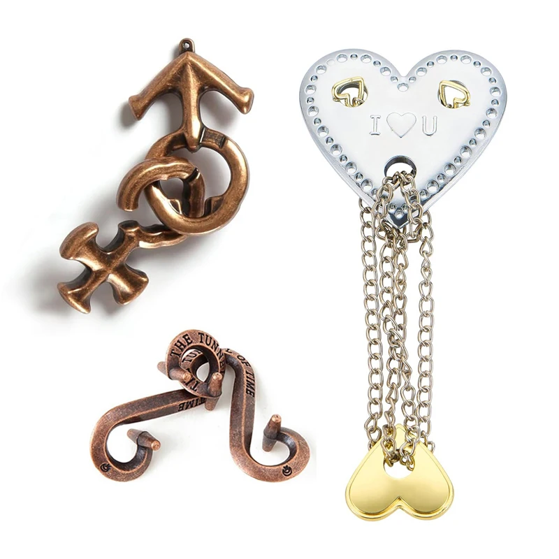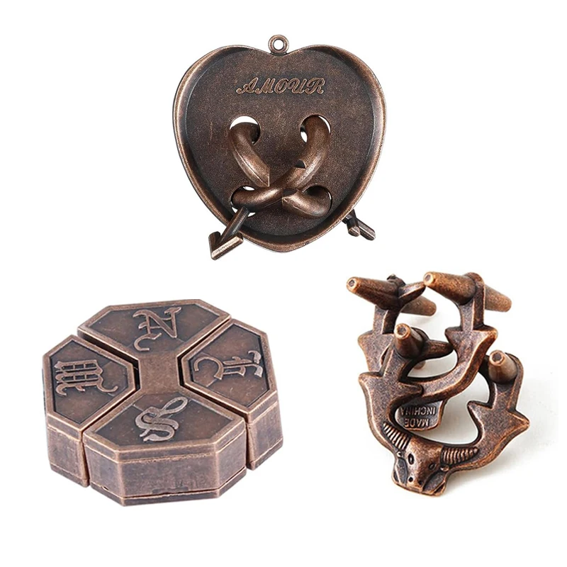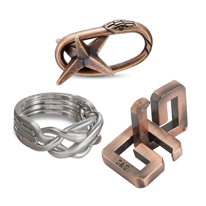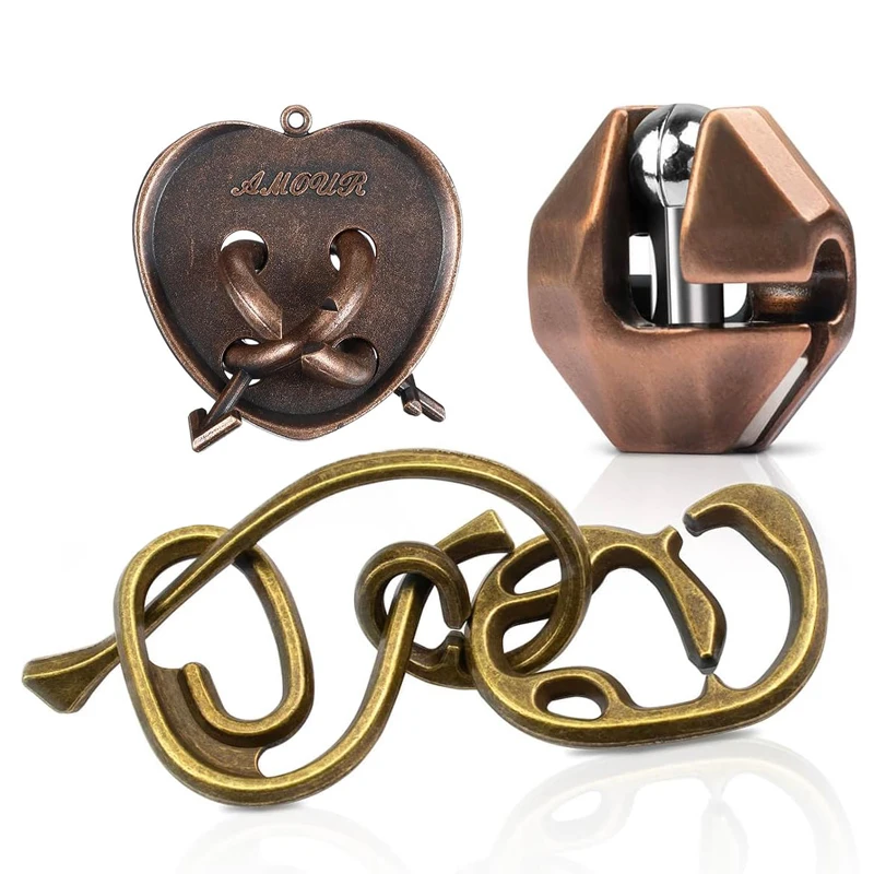 Ensemble De Puzzle casse-tête en métal déroulant magique, 3 pièces, jouets éducatifs démêlants, cadeaux amusants pour adultes et enfants