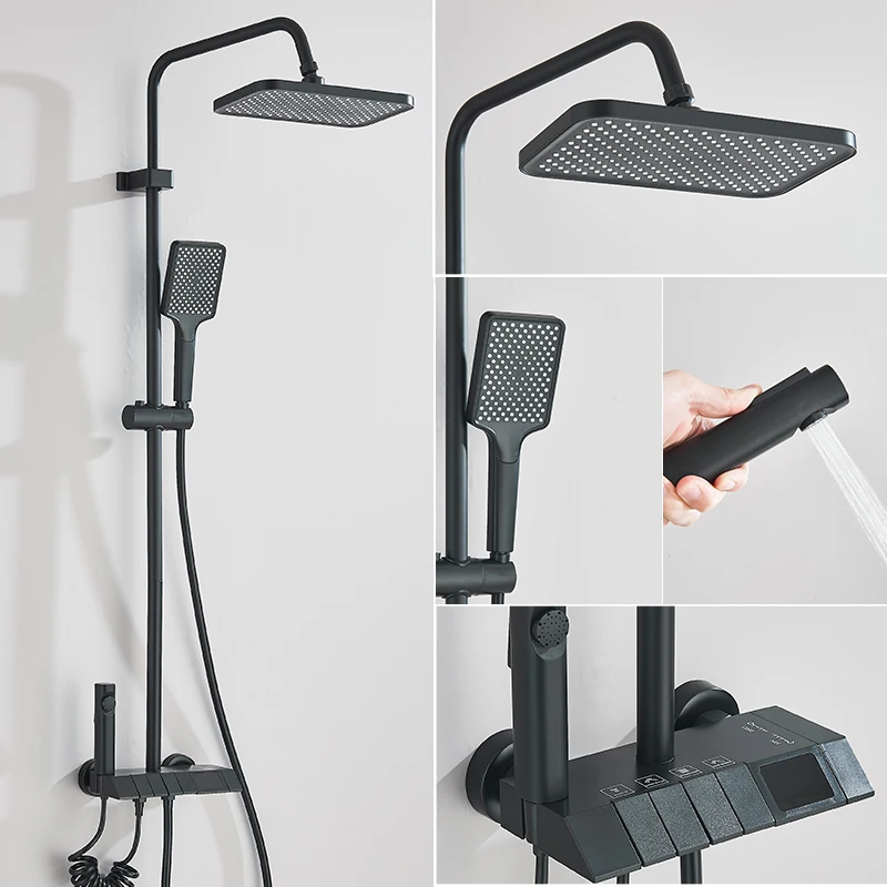 Ensemble de robinets de douche à affichage numérique intelligent, système de salle de bains à pluie de Style Piano, mitigeur numérique gris, douche de Bidet