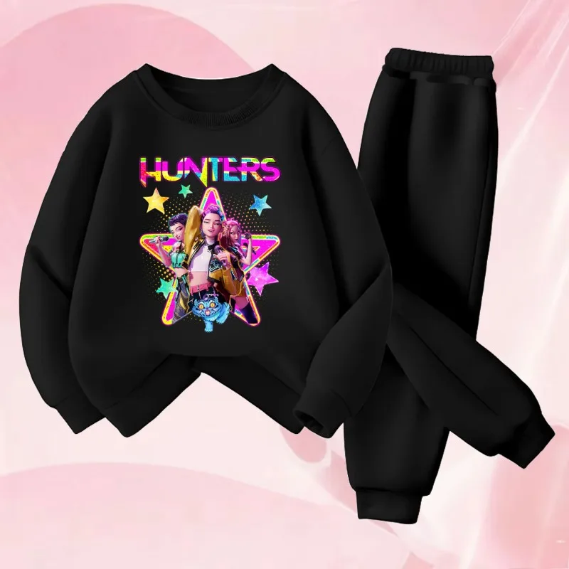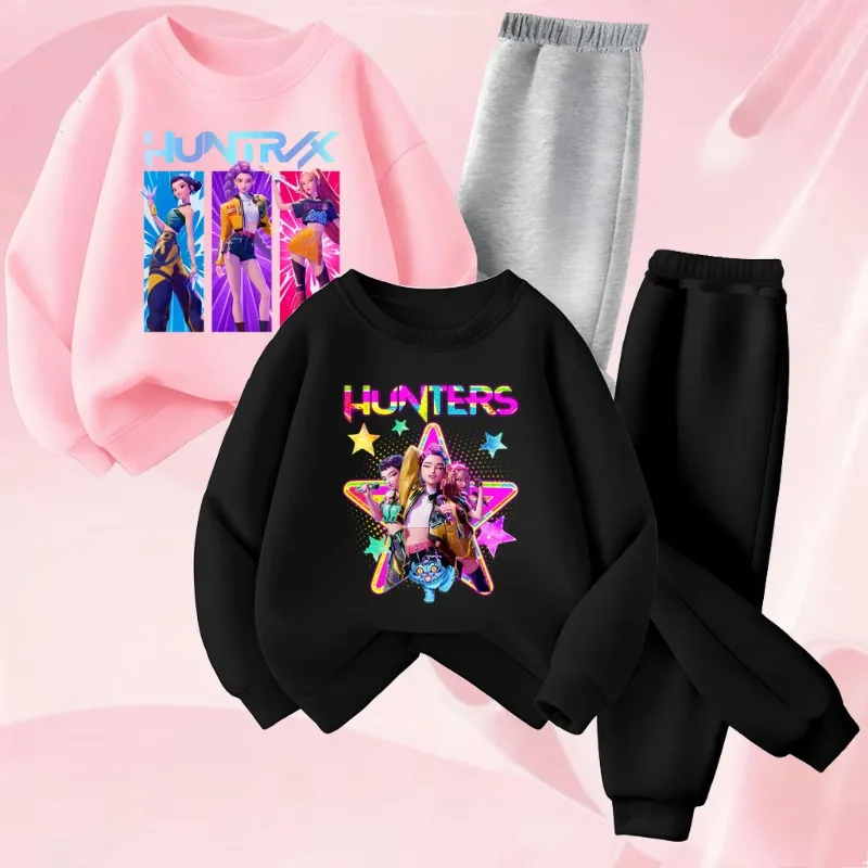 Ensemble de sweat-shirts à col rond pour filles, imprimé dessin animé KPOP, printemps-automne, sweat-shirt et pantalon de survêtement pour enfants, ensemble 2 pièces, ensemble décontracté pour enfants