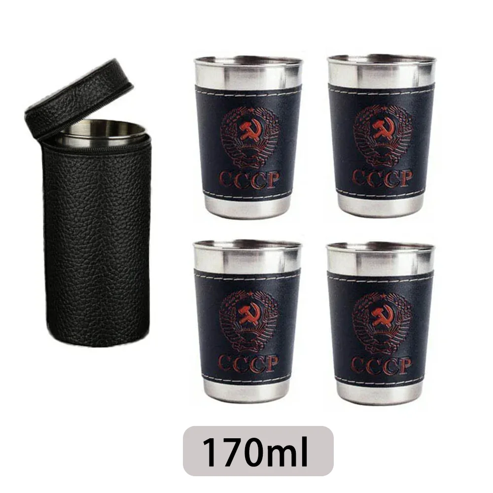 Ensemble de tasses de voyage en plein air, vaisselle de Camping, tasse en acier inoxydable avec cuir PU, tasse Portable pour café, vin, bière, whisky, 4 pièces