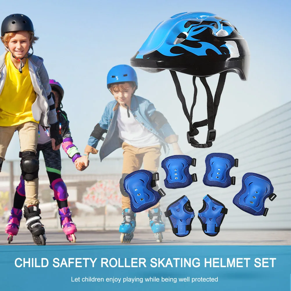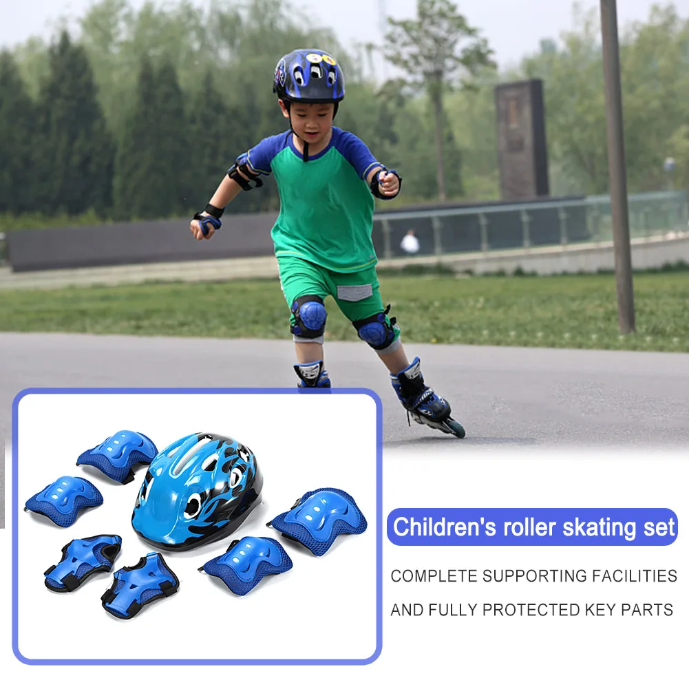 7 pièces casque genou coude équipement de protection ensemble avec protège-poignets enfants vélo Sport équipement de protection réglable respirant 48-55 cm pour skateboard/vélo/patinage/cyclisme