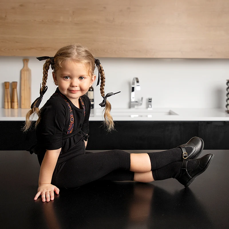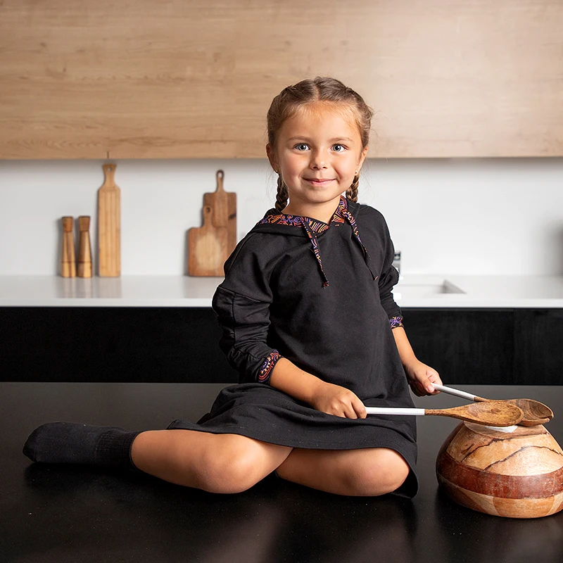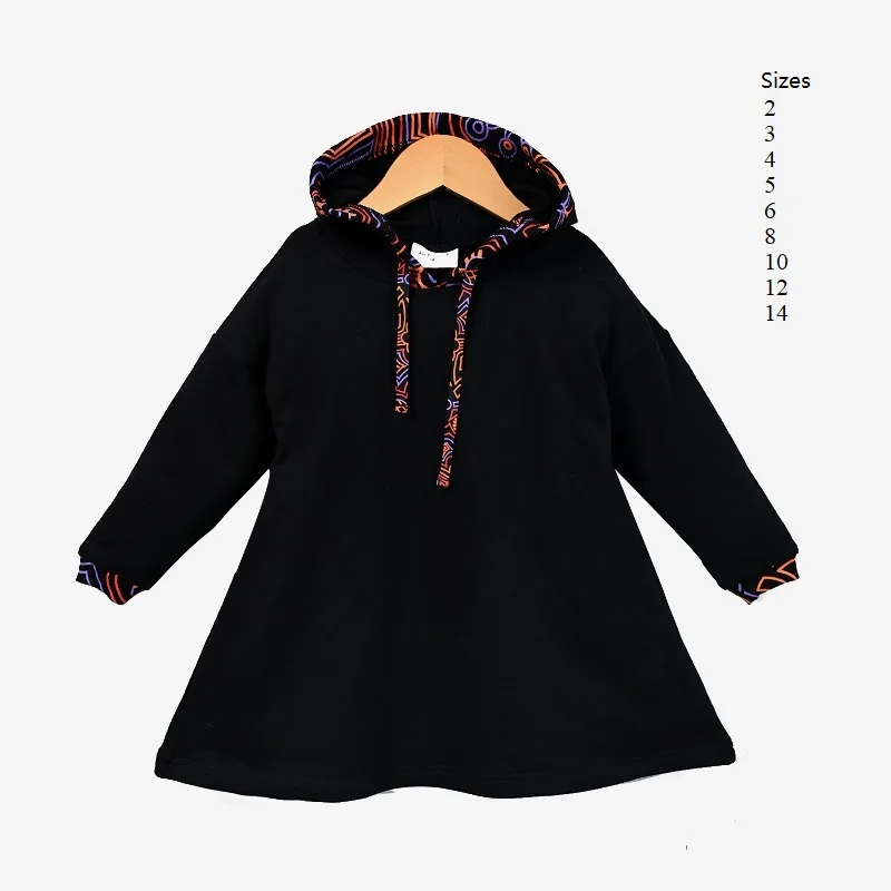 Ensemble familial à capuche en coton noir pour fille, robe en éponge française, petit haut à capuche, barboteuse pour bébé, pour l'automne, noir avec garnitures colorées
