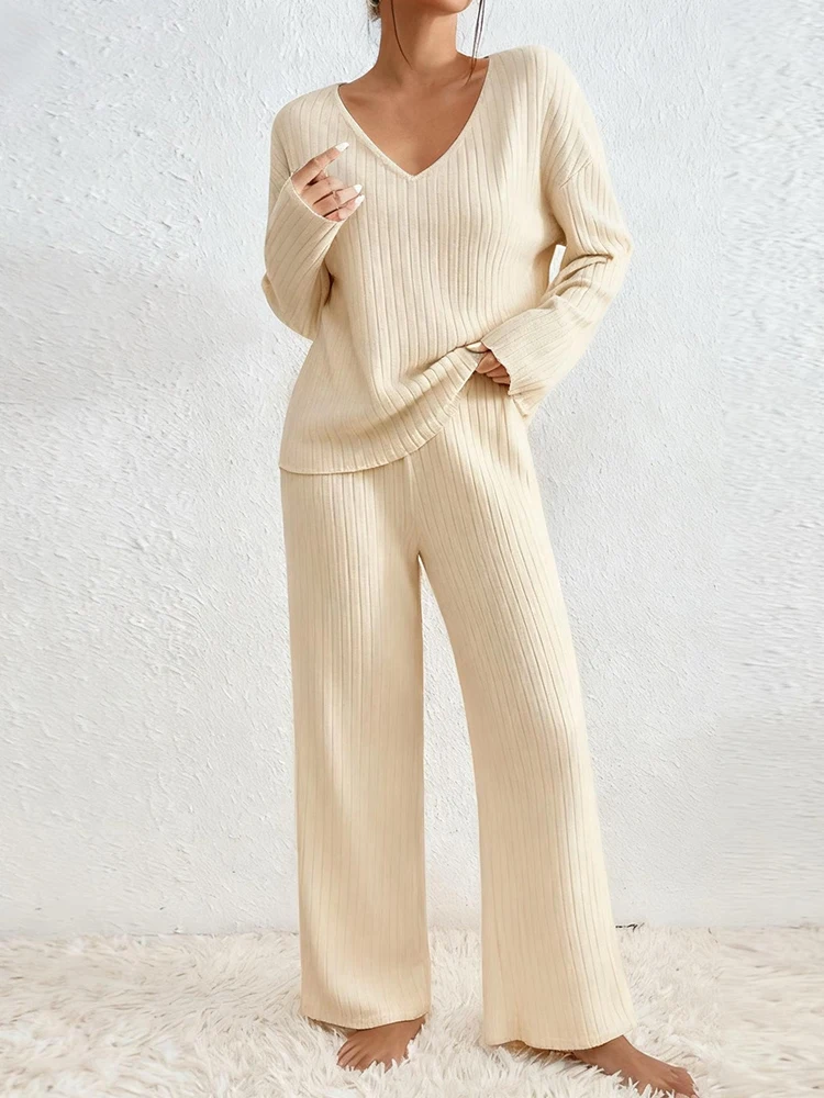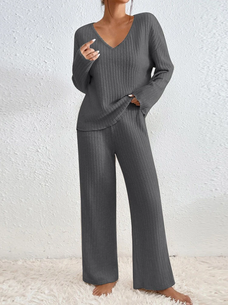 Ensemble pantalon à jambes larges pour femme pour l'automne/hiver 2025 : vêtements de sport décontractés à manches longues, ensemble deux pièces pour les déplacements et les multi-occasions