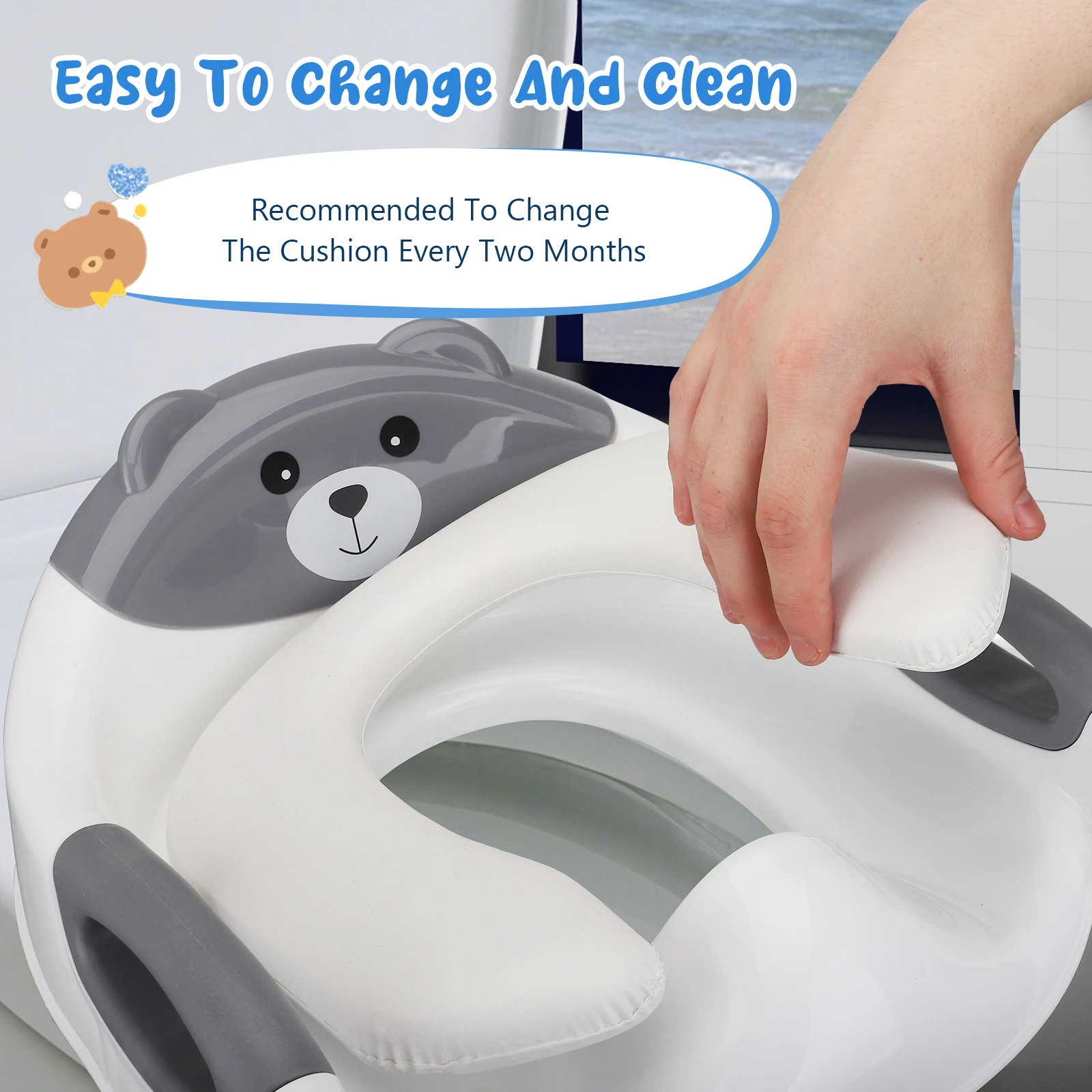 Hygiénique et confortable : le coussin imperméable amélioré en PVC a une excellente élasticité et un toucher doux et protège la peau sensible des enfants.La conception du bouchon pipi aide également à éviter les éclaboussures d'urine et à garder la salle de bain propre.