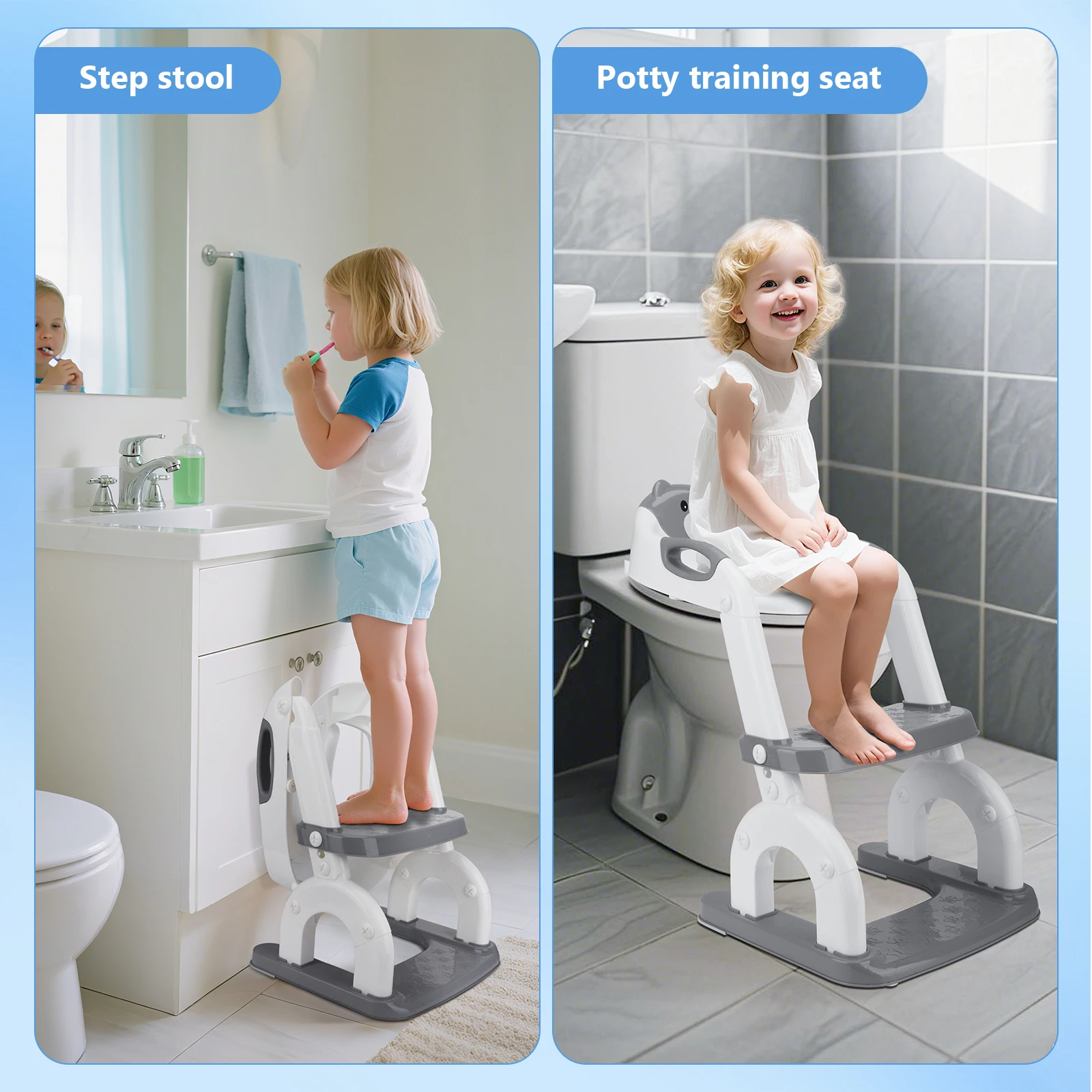 Réglable et polyvalent : ce siège de toilette pour enfants avec escaliers avec 10 positions de trous réglables, ce siège de toilette 2 en 1 peut être ajusté au confort et aux besoins de votre enfant.Il peut être utilisé comme siège de toilette pour les enfants ou comme marchepied pour que les enfants puissent atteindre l'évier ou les toilettes.