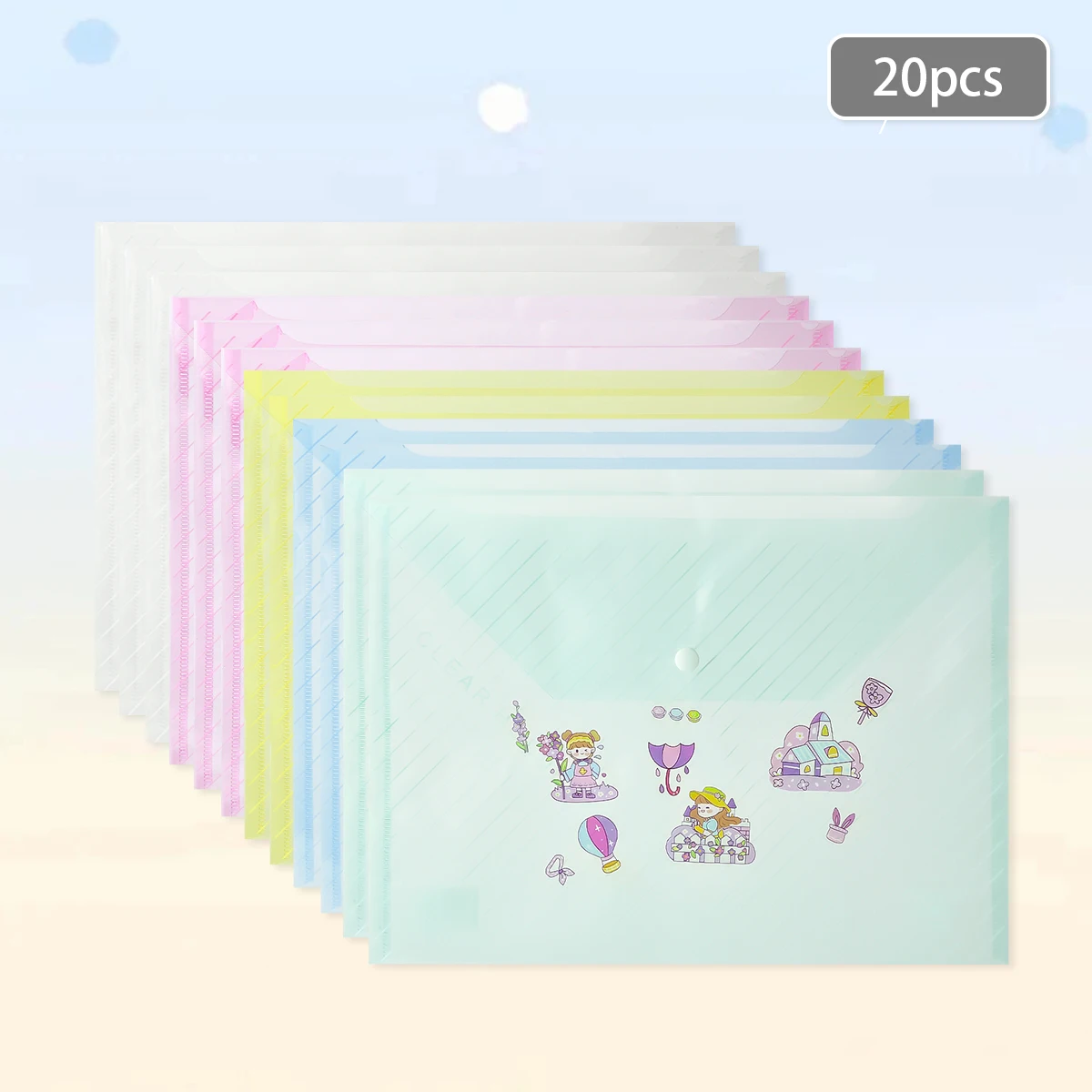 Enveloppe en plastique 10/20 pièces, dossier transparent de couleur aléatoire 5 couleurs A4 adapté aux fournitures scolaires et de bureau, 12.6x9.06 pouces