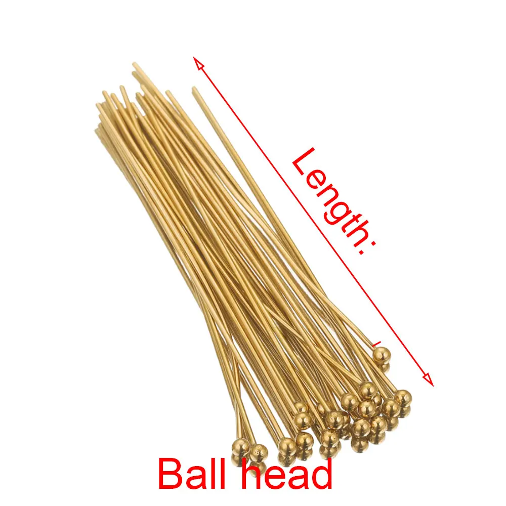 Épingles à tête sphérique plate en acier inoxydable PVD, 20 pièces, 20-70MM, aiguille pour perles, boucles d'oreilles, connecteur artisanal, matériaux de fabrication de bijoux