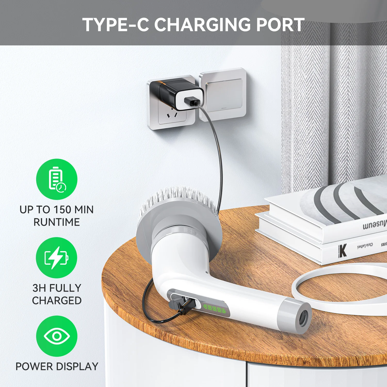 Épurateur électrique à rotation IPX7, épurateur de douche électrique étanche avec têtes remplaçables, brosses de nettoyage pour salle de bains, baignoire, carrelage, sol
